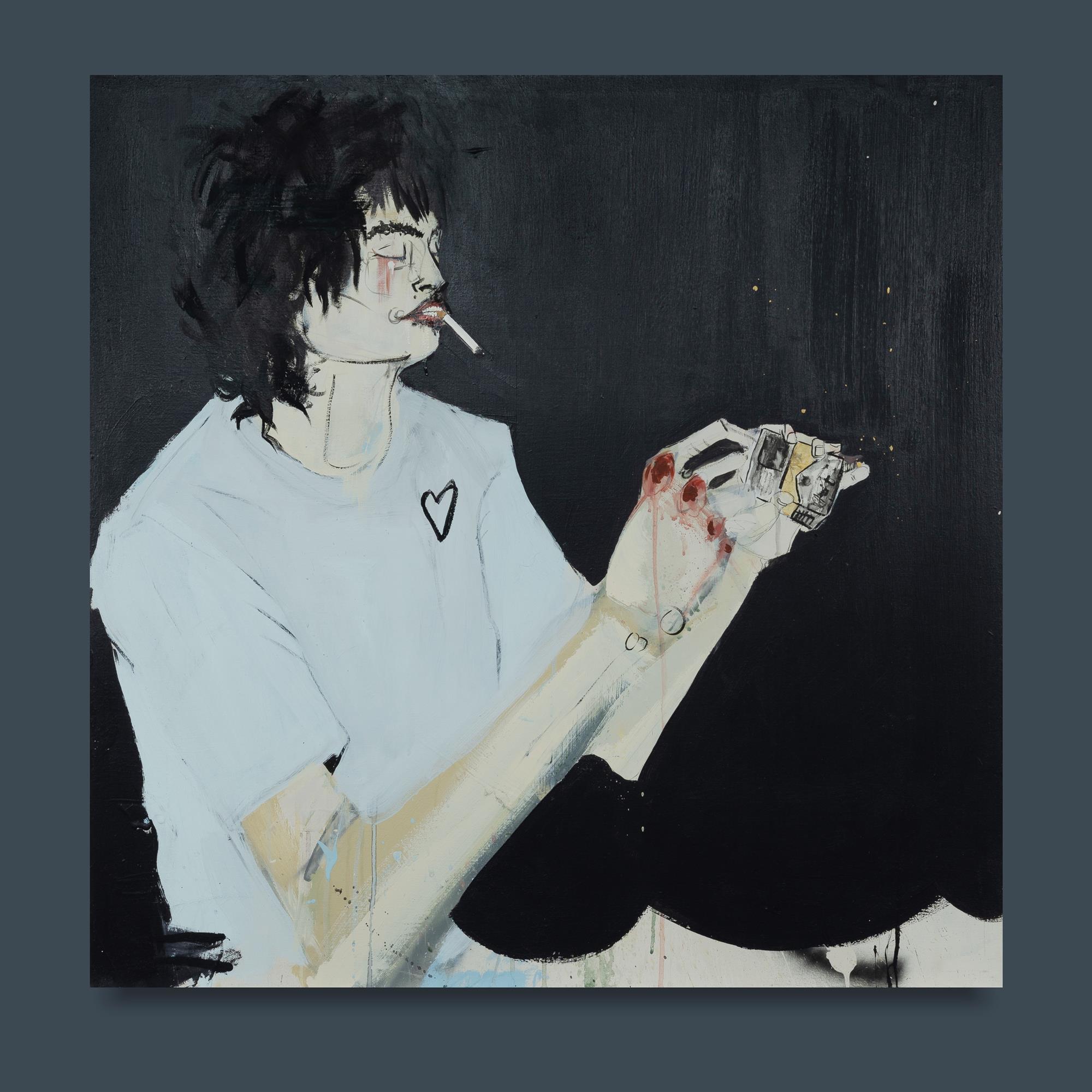 MEDOR, Julian 'Take Another for the Team,' 2008. Ex Schubert Contemporary, Gold Coast (label verso). Mixed Media on Canvas 81x81cm PROVENANCE: Lawsons, Sydney, 18th August 2011 (lot 35)Estimate $300-500