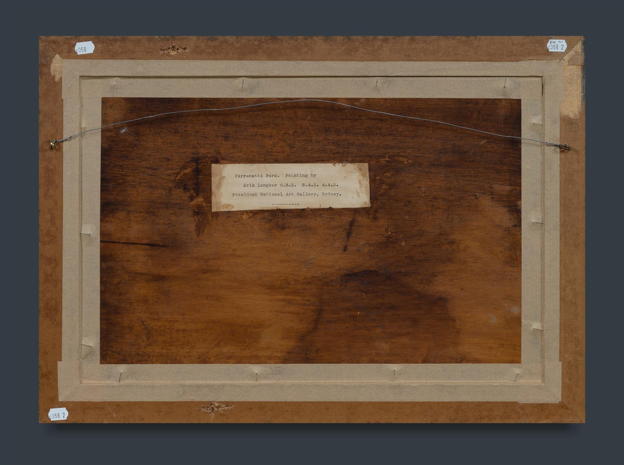 LANGKER, Erik (1898-1982) 'Parramatta Park' Unsigned Old label verso, plus faint inscription including title and artist. Oil on Board 26.5x40.5cmEstimate $300-400