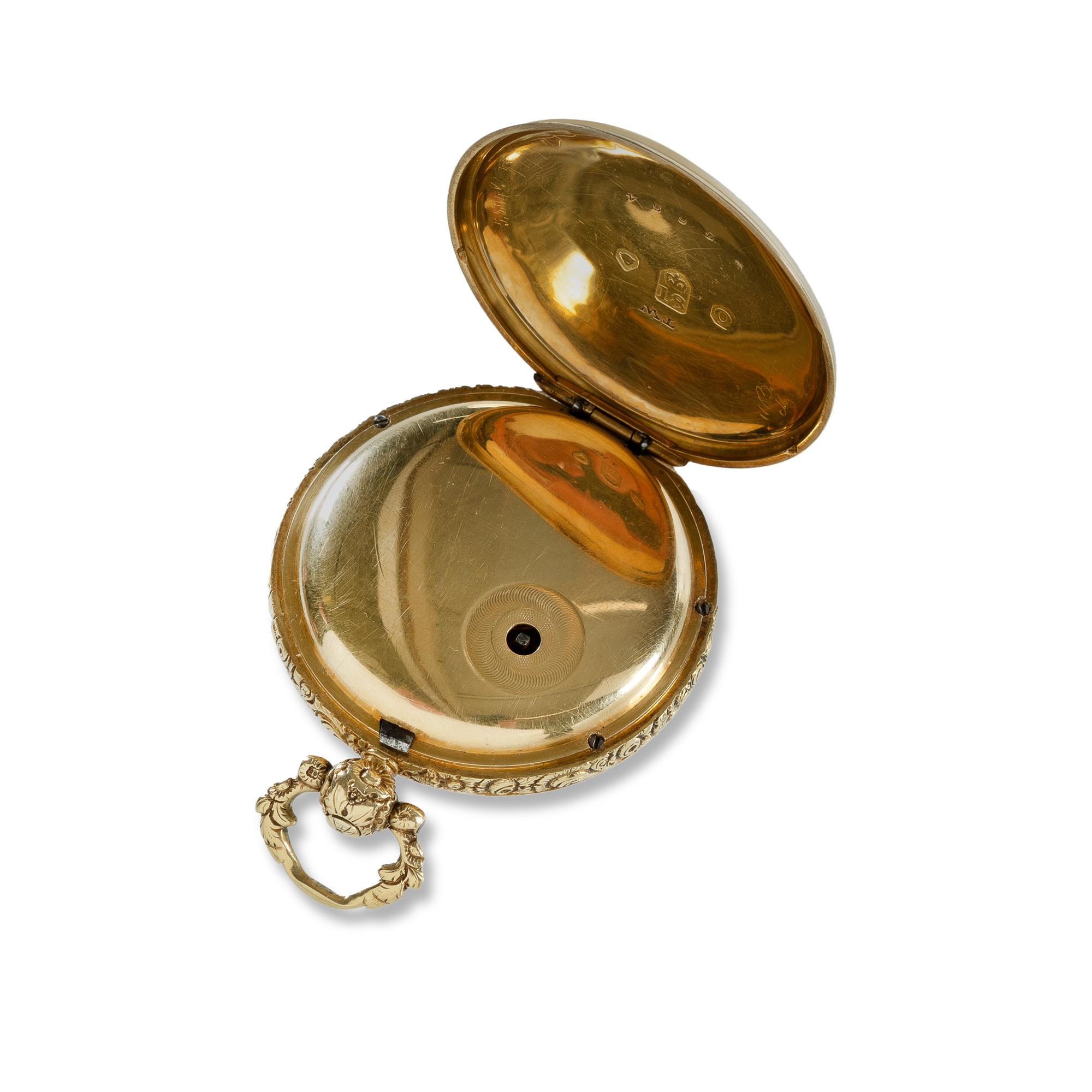 19th C Gold Cased Lever Fusee Pocket Watch By Ganthony. Two-tone gilt Roman dial, balance with diamond end cap. 18ct case with London hallmark for 1829. Running. (W71.6g)Estimate $500-1,000