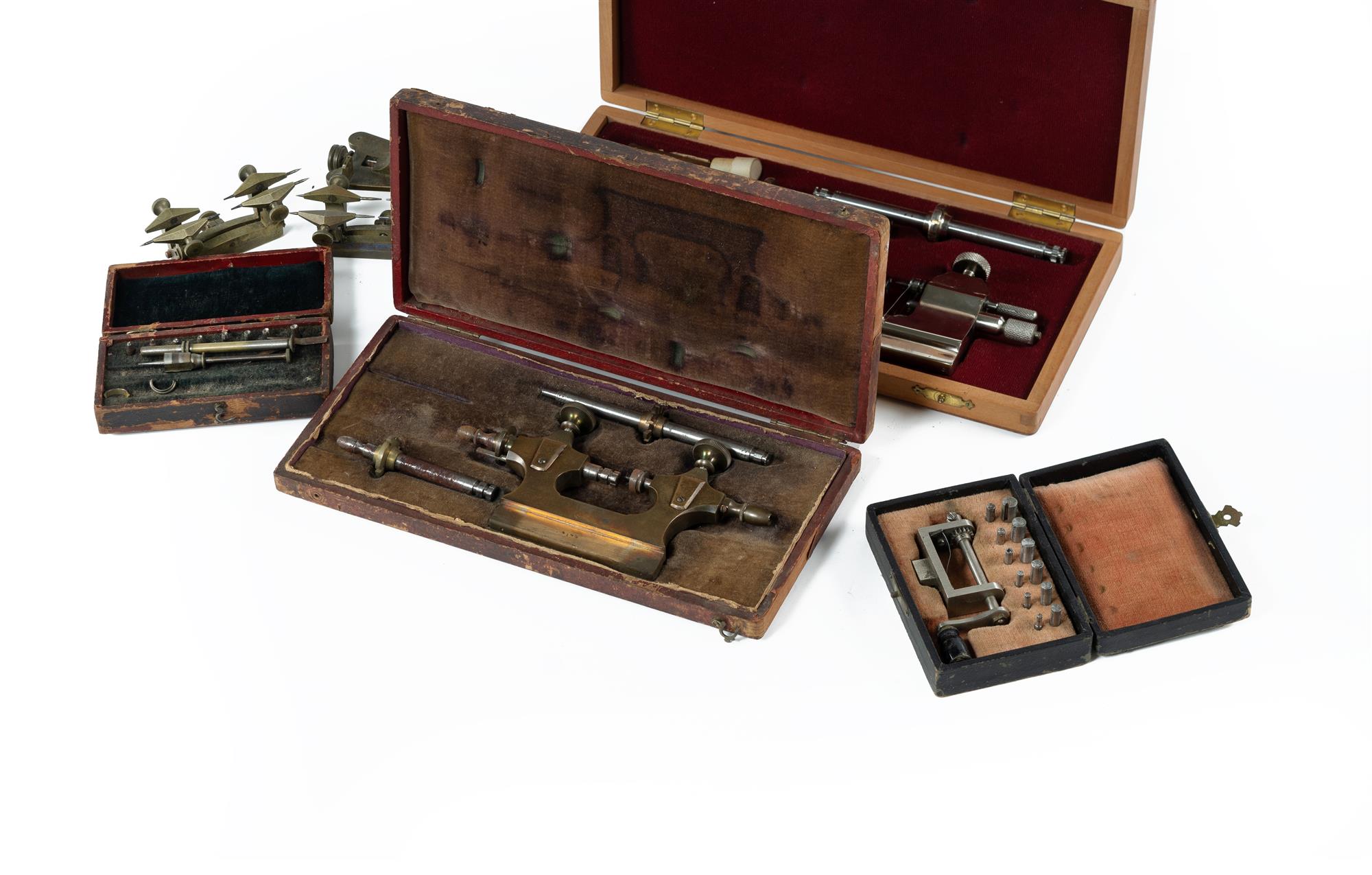 Various Watchmakers Tools Twenty mostly antique tools, including indexing scribers, depth tools, jewel setters, mainspring winder, roller extractors, roller indentor, balance calipers etc.Estimate $500-800