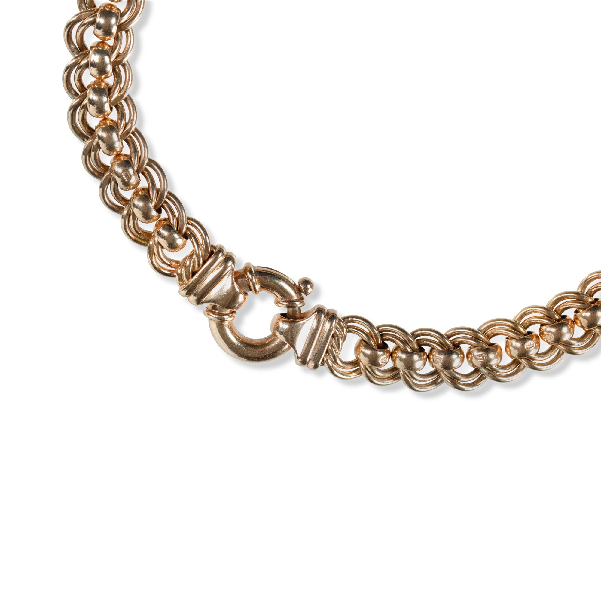 9ct Pink Gold Double Curb & Ring Necklace Solid fancy link neck chain with 20mm bolt ring clasp. (W1.3cm L42cm) W115.17g (approx)Estimate $3,750-7,000