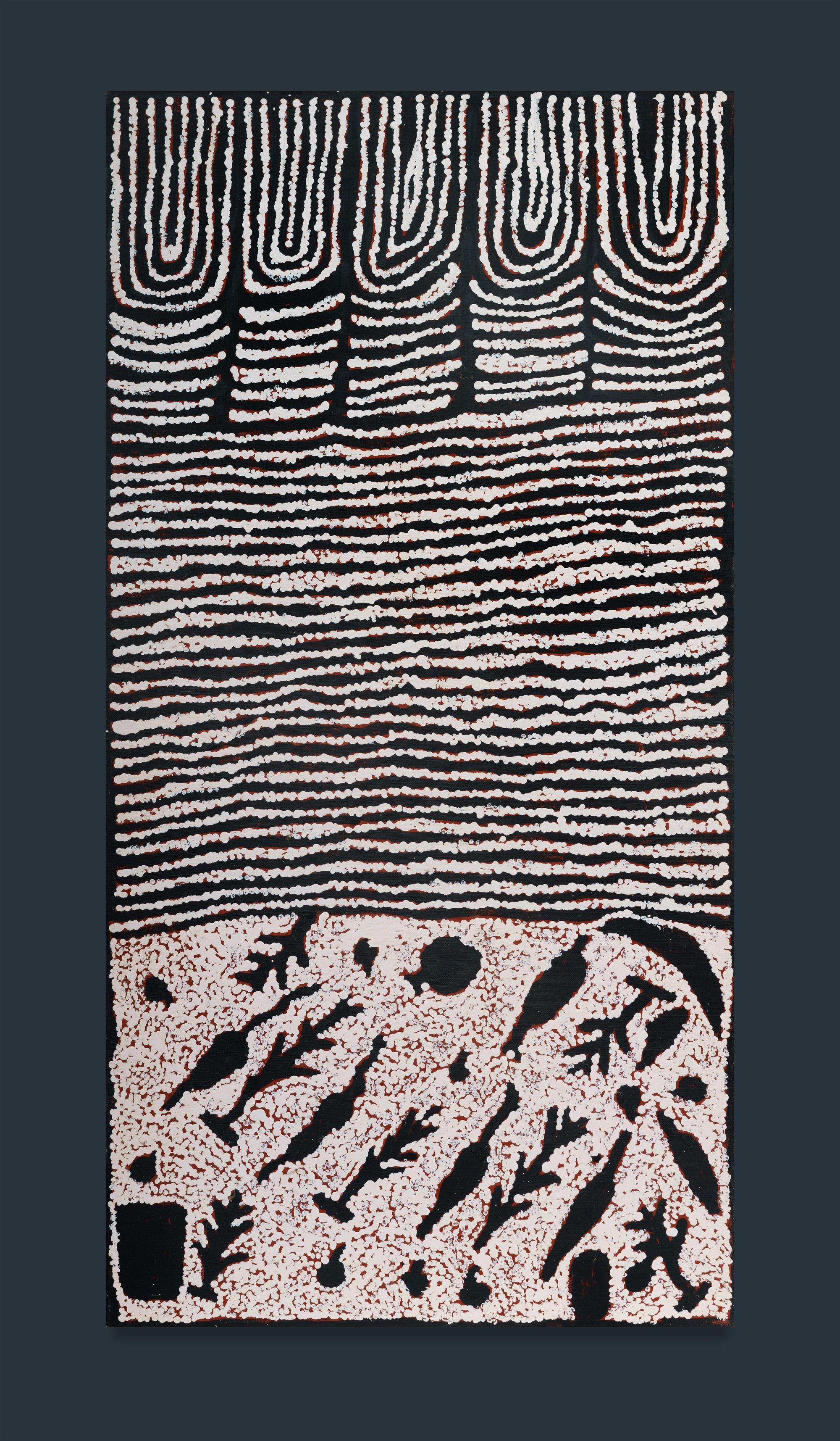 NAPALJARRI, Eileen (Aboriginal b.1956) Untitled (Tjiturrulpa), 2002. Inscribed verso, Papunya Tula Artist Pty Ltd. cat #EN0206193. Accompanied by certificate of authenticity. Acrylic on Linen 91x46cmEstimate $600-1,000