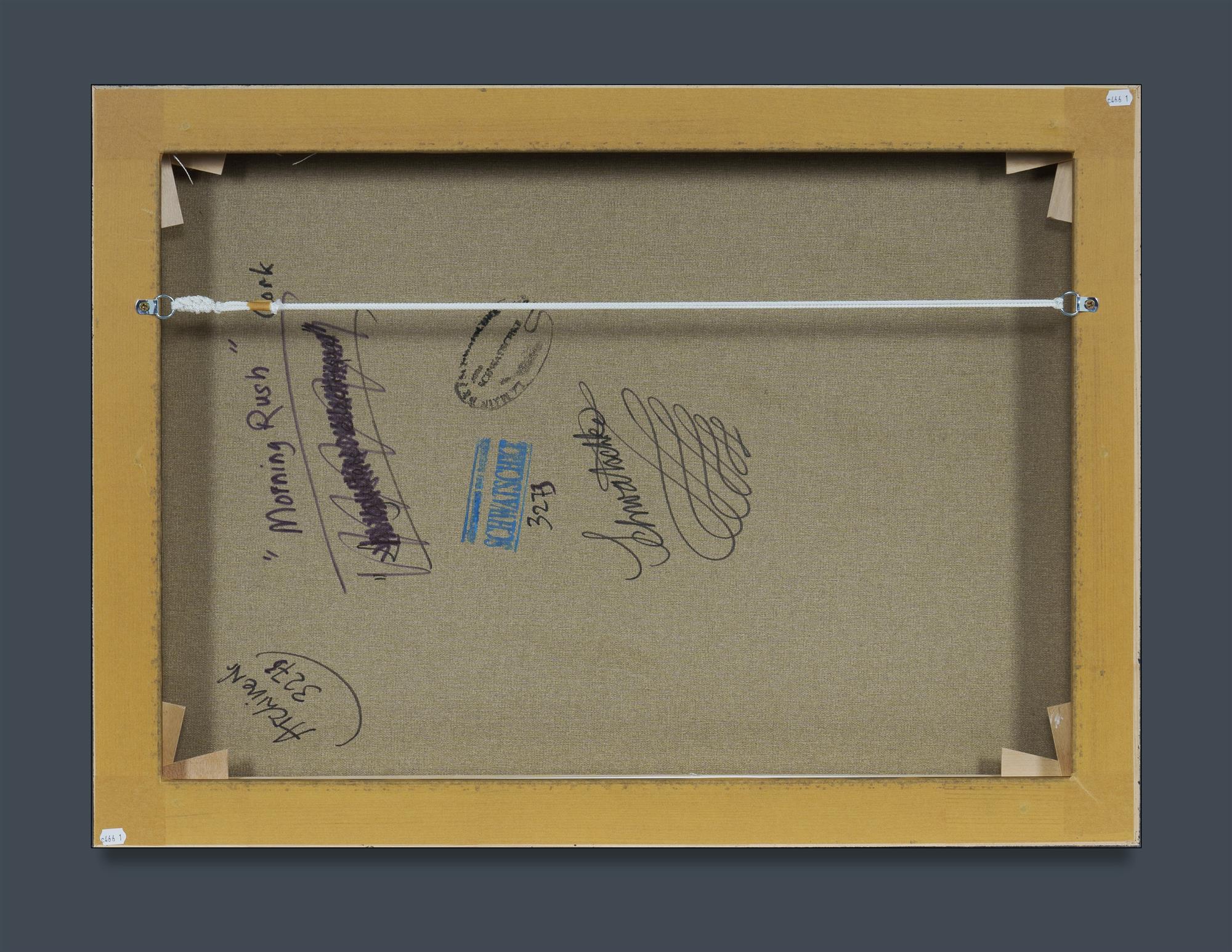 SCHWATSCHKE, John (Irish b.1943) 'Morning Rush, Cork' Signed and inscribed verso. Oil on Canvas 50x70cmEstimate $500-800