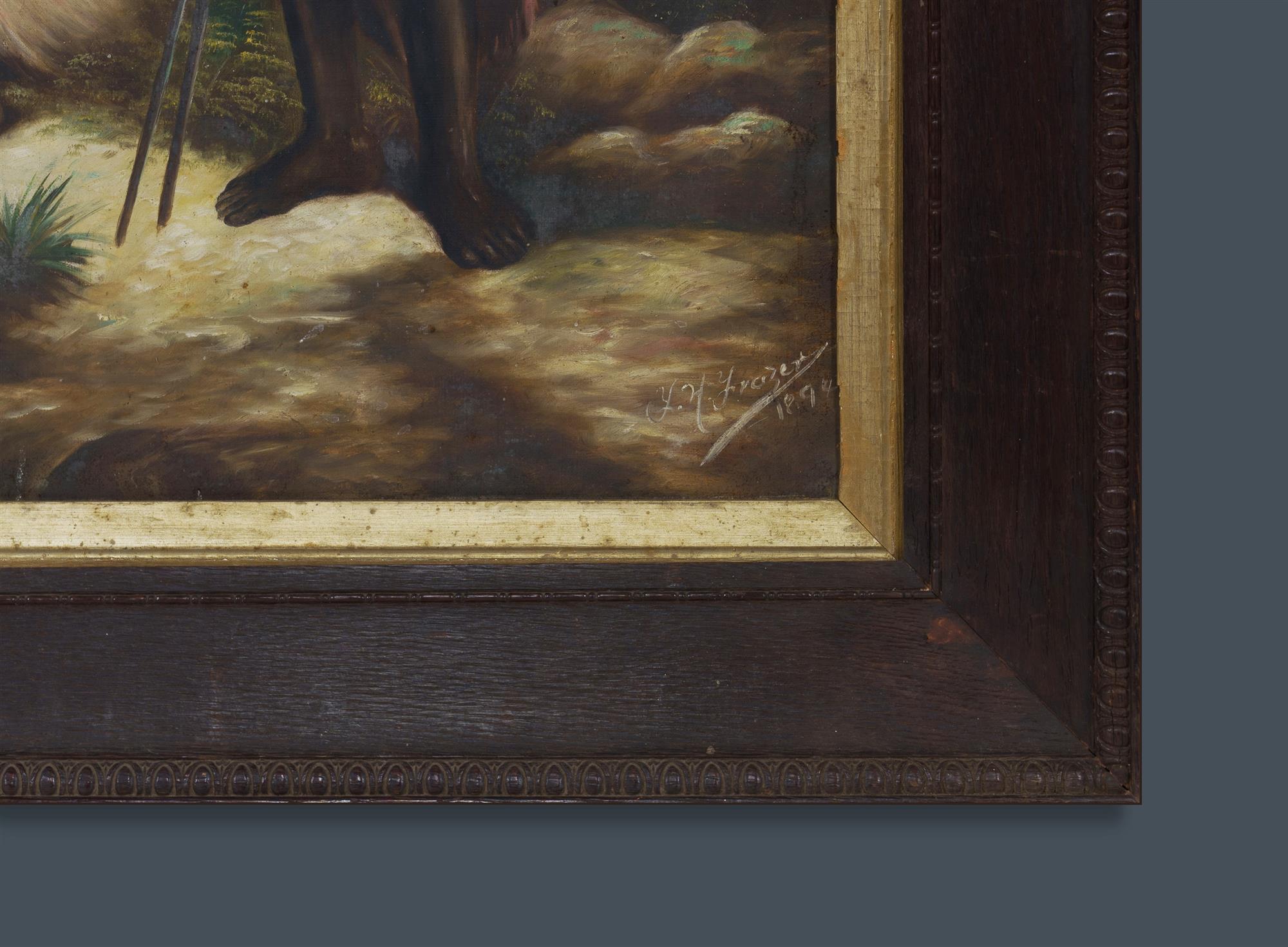 Signed F H FRAZER 'The Return to the Old Hunting Grounds,' 1894. Copy of the engraving by Samuel Calvert, c.1875. Oil on Canvas 82.5x57.5cm PROVENANCE: The Fred and Elinor Wrobel Collection, Sydney; Estate Late Elinor Wrobel.Estimate $300-450