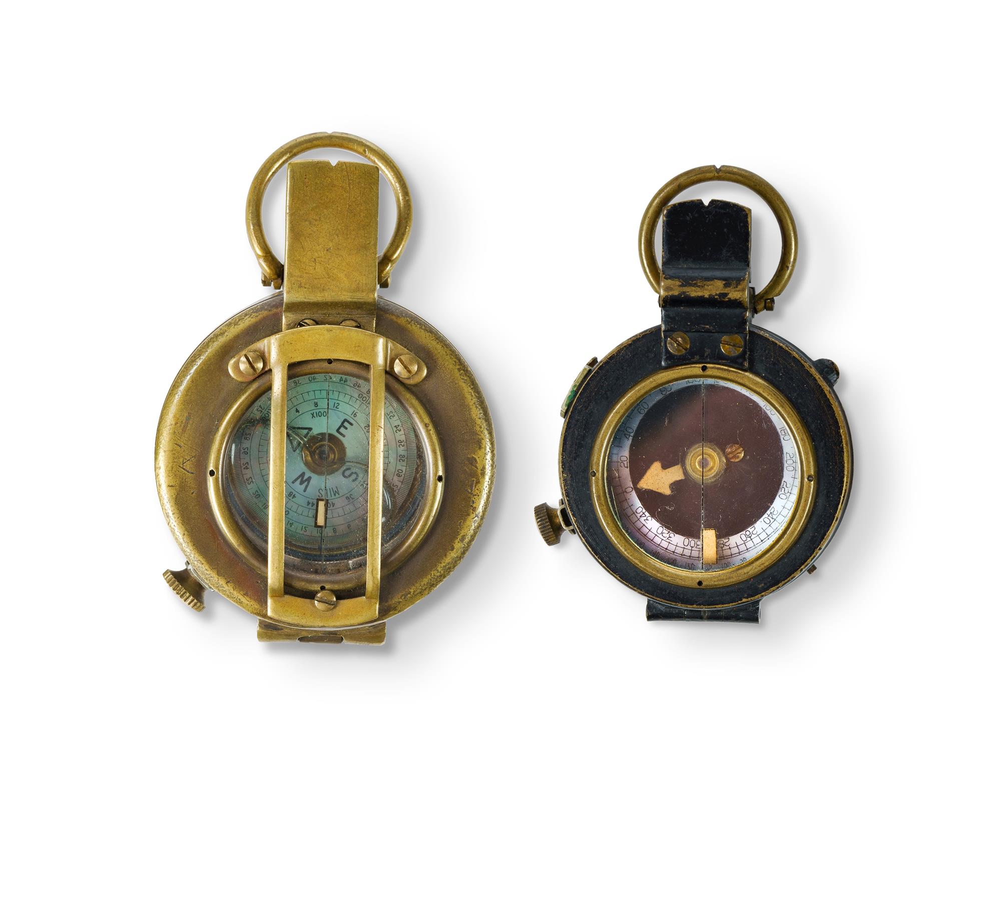 2 WWII Prismatic Compasses Includes Australian MK.IX, maker JW Handley of Melbourne, 1941; and MK.III by T.G & Co. of London, 1944.Estimate $150-300