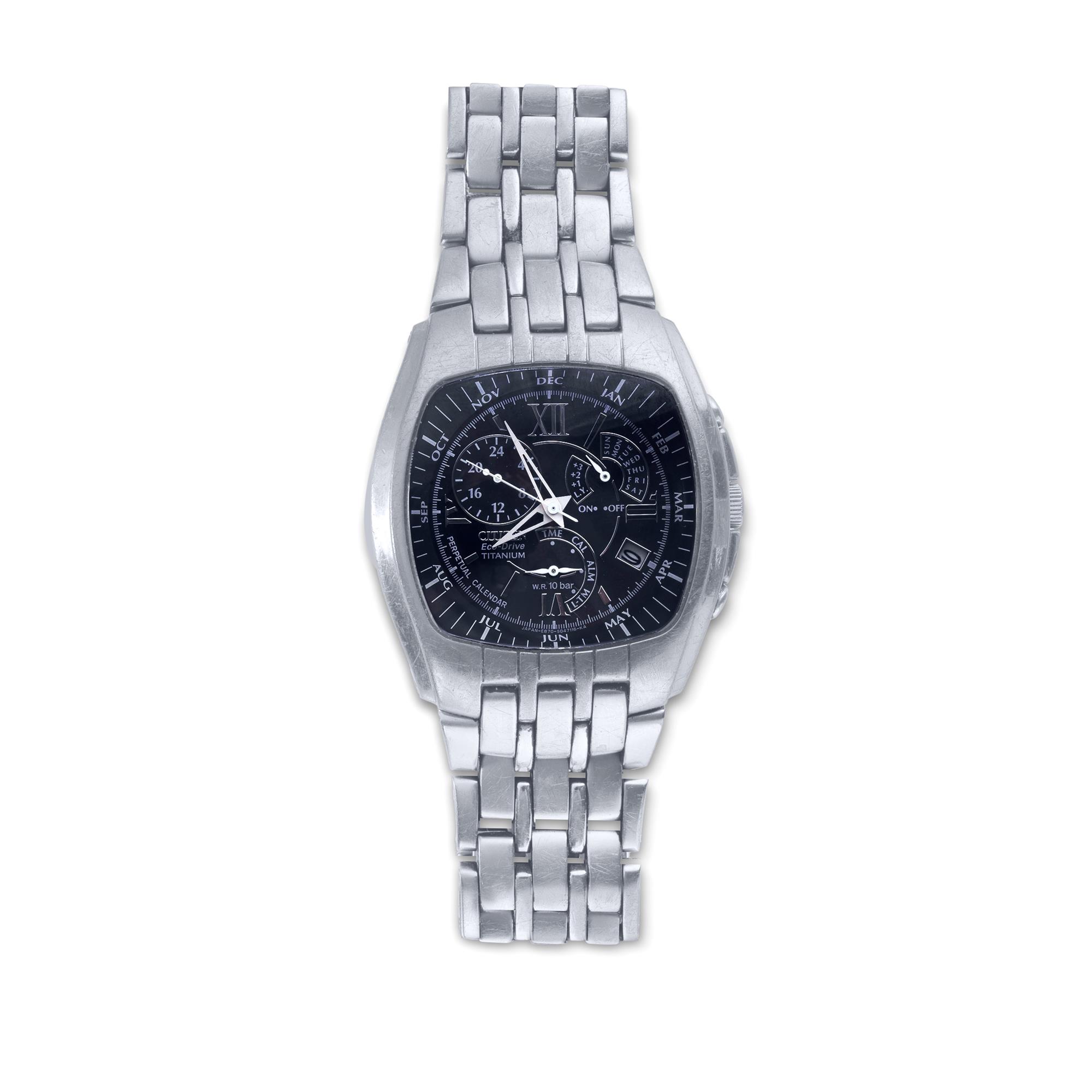 2 Citizen Eco-Drive Watches Includes boxed (lightly used) 8700 Calibre Perpetual Calendar; and titanium (use wear) Perpetual Calendar. Untested.Estimate $60-150
