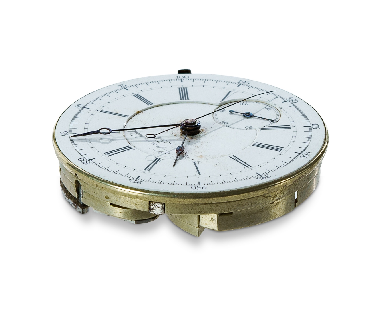 A. Huguenin Nardin Stopwatch Movement Appears complete except for stem winder, balance in poise and will run intermittently (44mm), dial and original hands good.Estimate $80-120