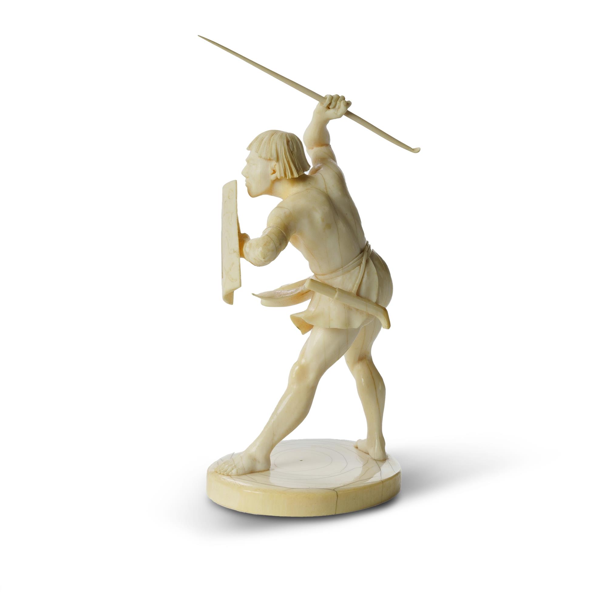 Japanese Meiji Period Ivory Okimono Well carved figure of a Dayak warrior. Signed to base. NB: ivory export restrictions (H18cm) Estimate $300-500