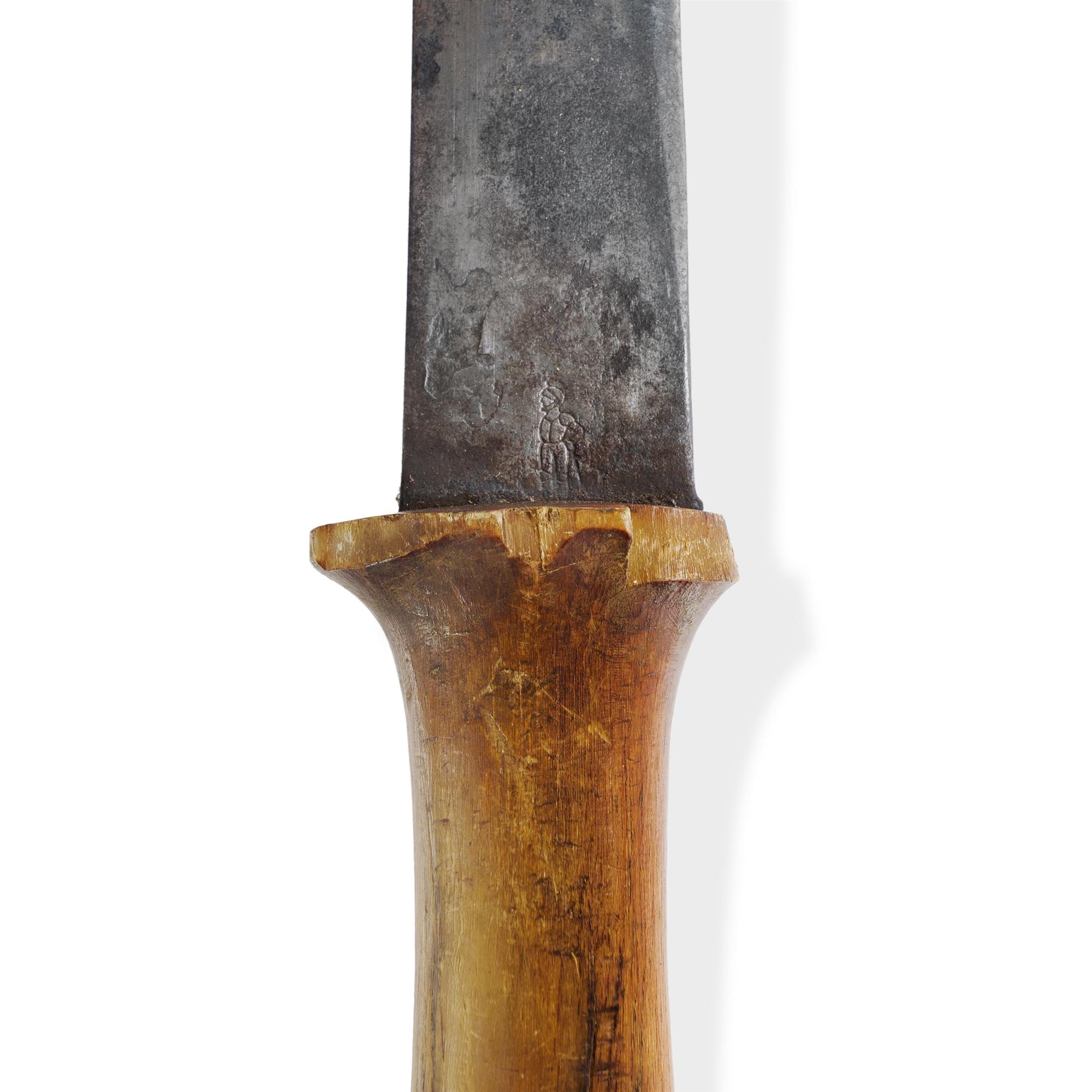 19th C Ethiopian Gurade Sword Solingen blade by W. Clauberg with 'standing knight' maker's mark. Original horn hilt with filigree pommel; tooled leather scabbard. L90cm (total)Estimate $500-1,000