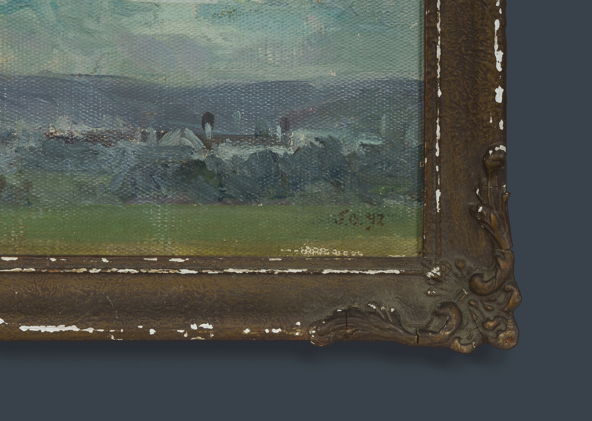 Attrib. OLSSON, Albert Julius (Julius) (British 1864-1942) Saint Erth, Cornwall, UK. Initialled J.O. lower right, and dated 92 (?) Attribution to Julius Olsson verso, in a later hand. Oil on Canvas 24x29.5cmEstimate $250-450
