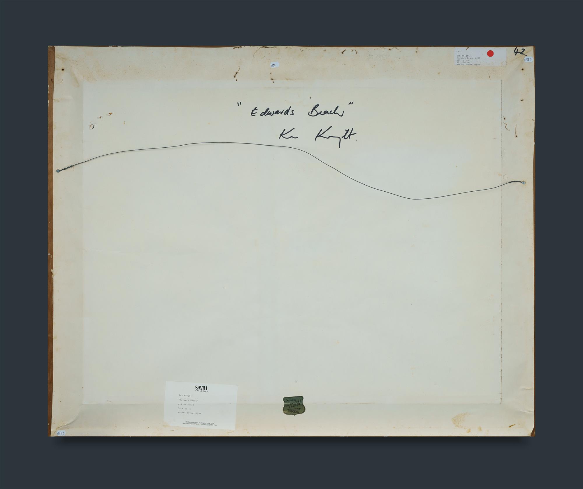 KNIGHT, Ken (b.1956) 'Edwards Beach [Balmoral]' 1995. Oil on Board 58x76cm PROVENANCE: Savill Galleries, Sydney, 'Sydney Harbour, Beaches and Foreshores,' November - December 1995, cat #14; private collection, Sydney.Estimate $3,000-5,000