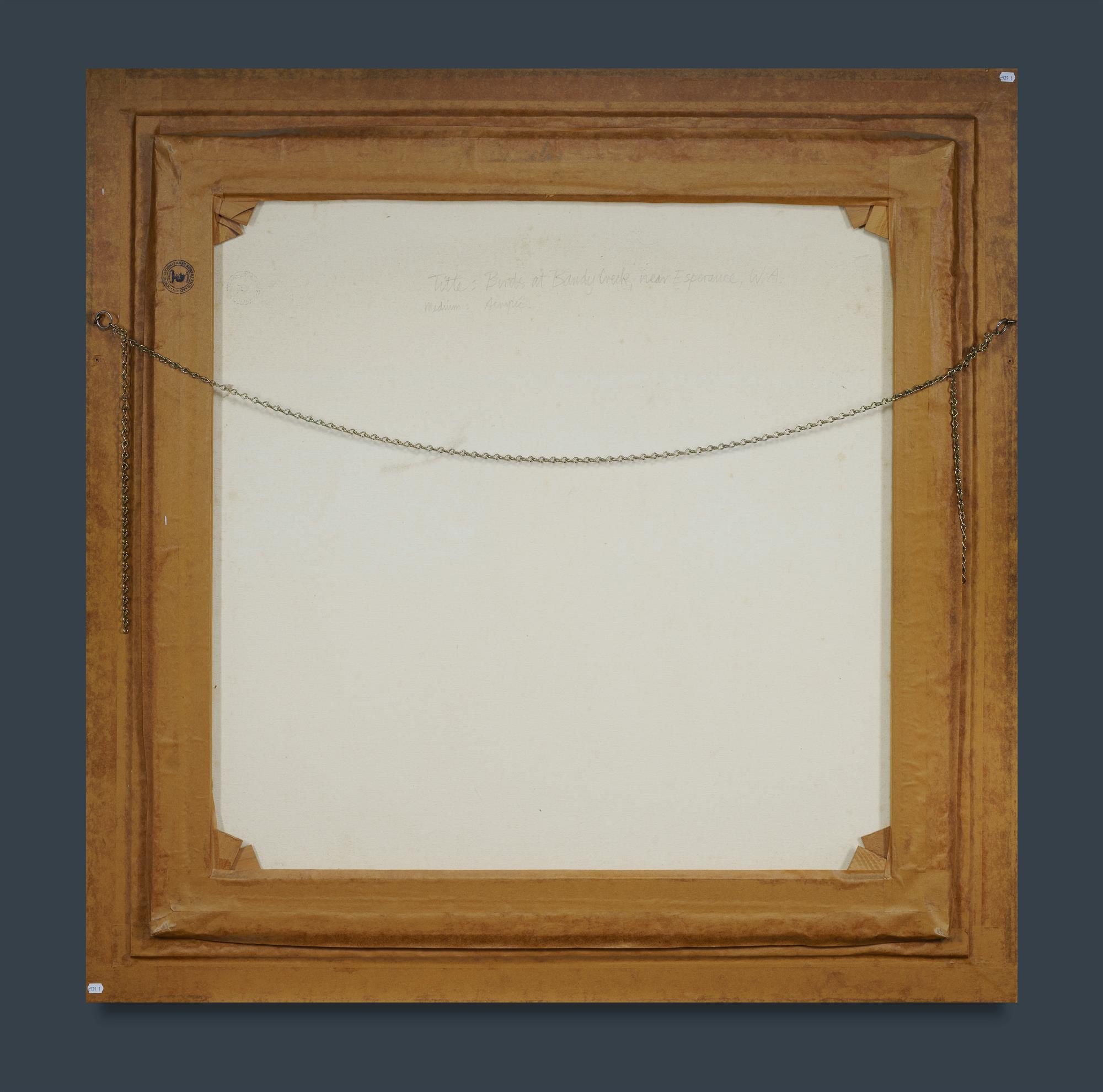 BAYLY, Clifford (1927-2022) 'Birds at Bandy Creek, near Esperance, WA,' 1986. Acrylic on Canvas 90.5x90cmEstimate $500-800