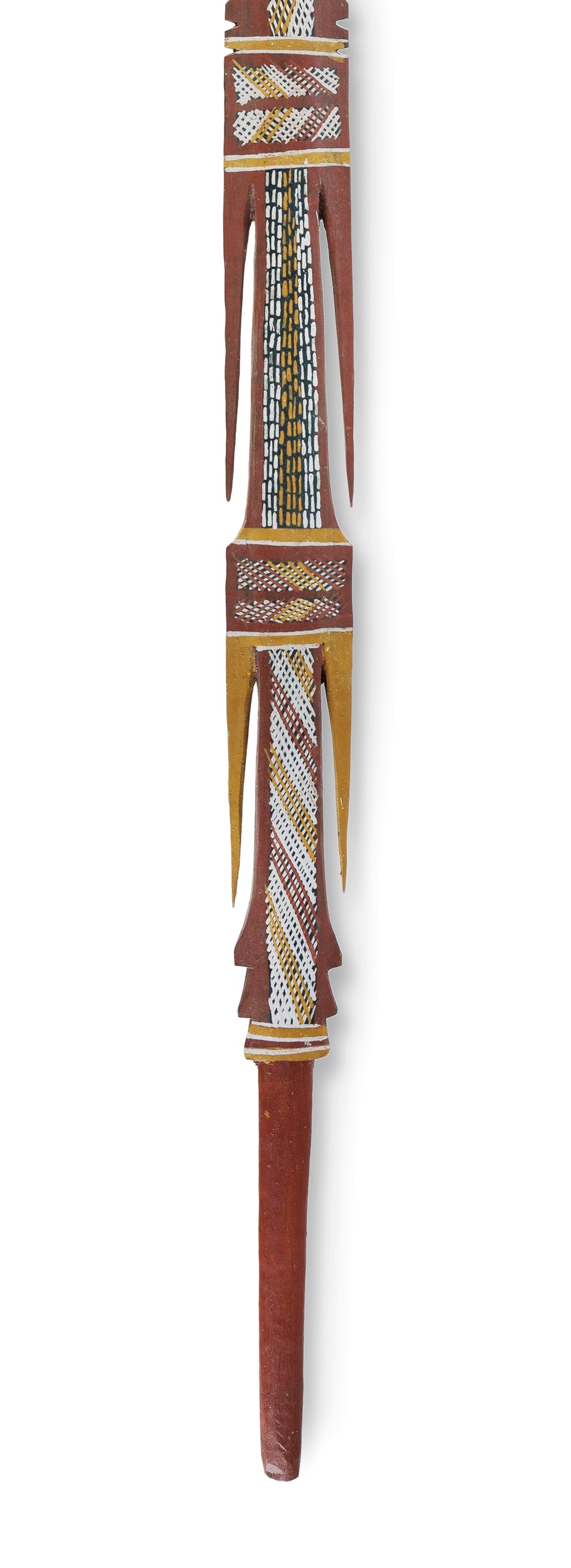 Aboriginal School Ceremonial Dance Spear Natural Earth Pigments on Softwood (L117cm) PROVENANCE: Collection of Dorothy Bennett; private collection, Victoria.Estimate $200-400