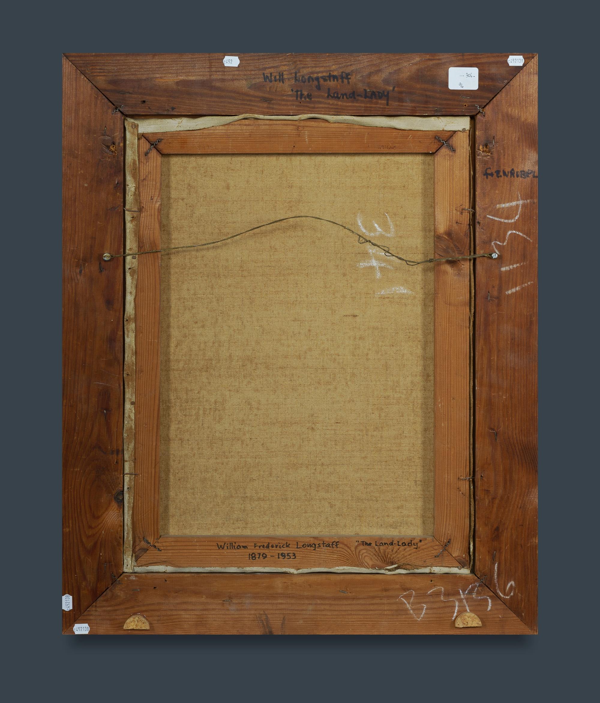 LONGSTAFF, William Frederick (Will) (1879-1953) 'The Land-Lady' Signed lower left and inscribed verso. Oil on Canvas 47x35cm PROVENANCE: The Fred and Elinor Wrobel Collection, Sydney; Estate Late Elinor Wrobel.Estimate $300-600