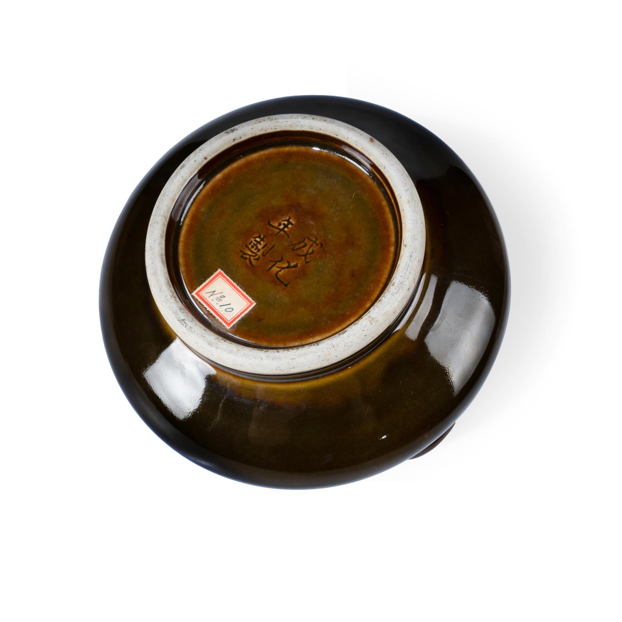 Chinese Olive Glazed Handled Censer Late Qing or Republic period. Incised apocryphal Chenghua four character mark. (W21cm)Estimate $100-300