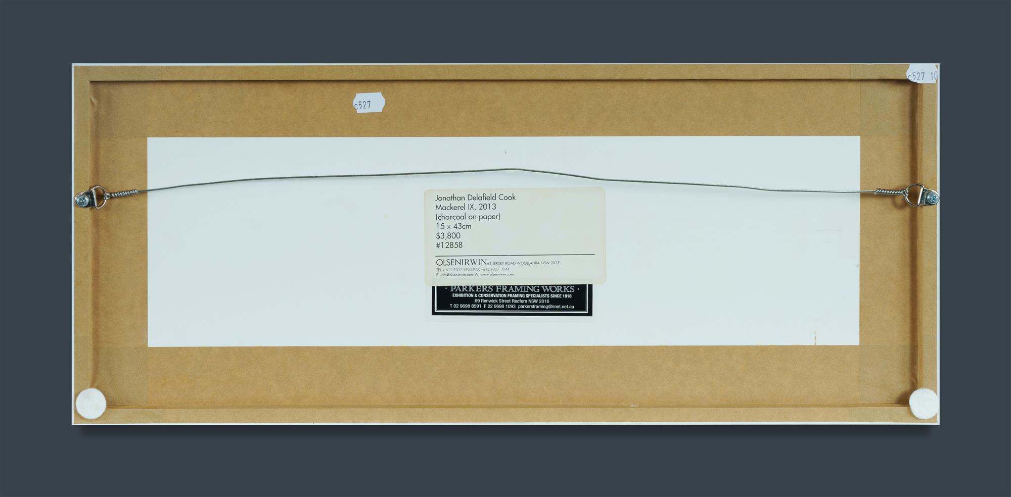 COOK, Jonathan Delafield (b.1965) 'Mackerel IX,' 2013. Ex Olsen Irwin Gallery, Woollahra Sydney (label verso) Charcoal on Paper 15x43cm PROVENANCE: Private collection, Sydney.Estimate $1,200-2,500