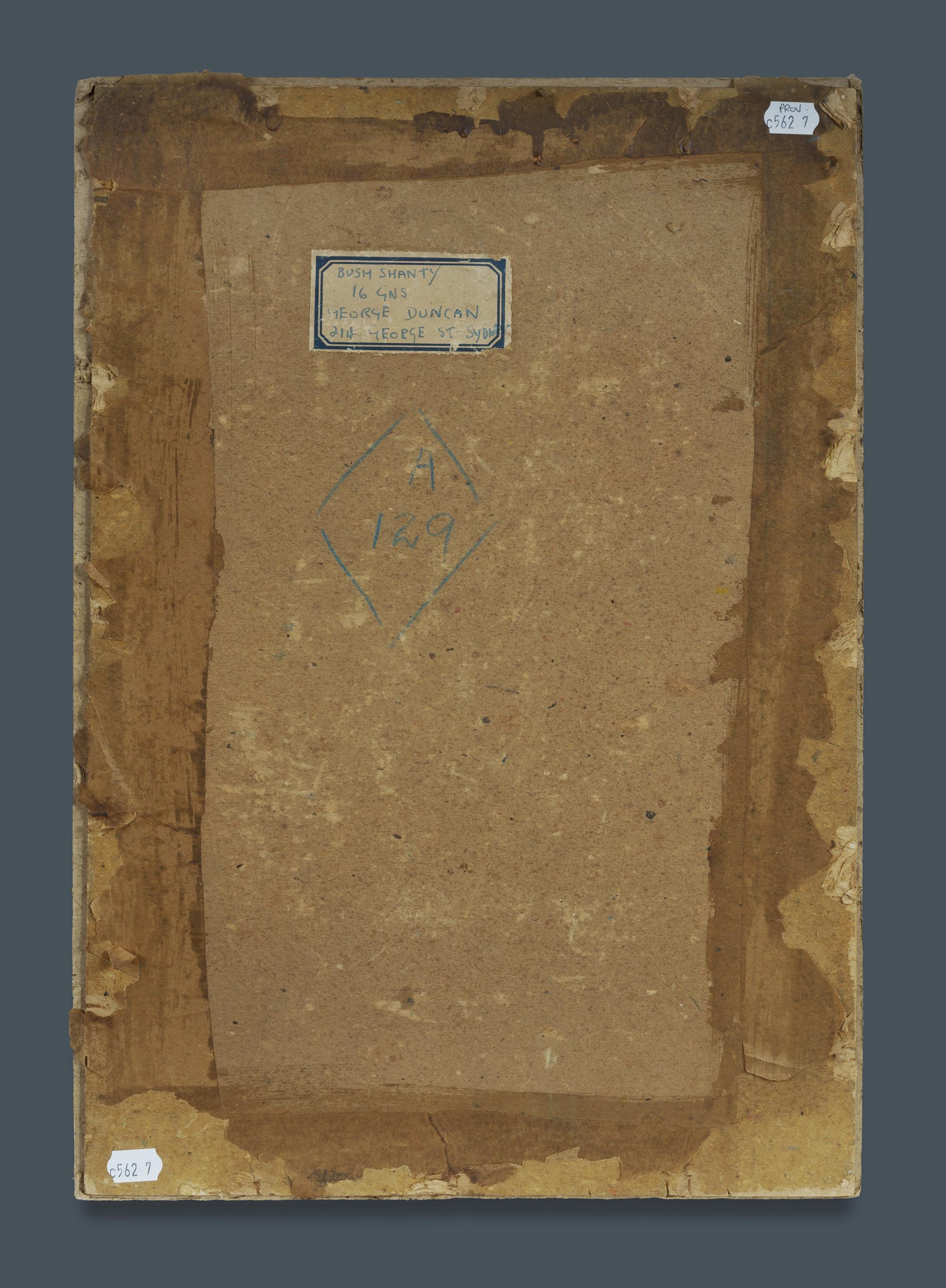 DUNCAN, George (1904-1974) 'Bush Shanty' Oil on Canvas on Board 38x26cm PROVENANCE: Family of the ArtistEstimate $100-200
