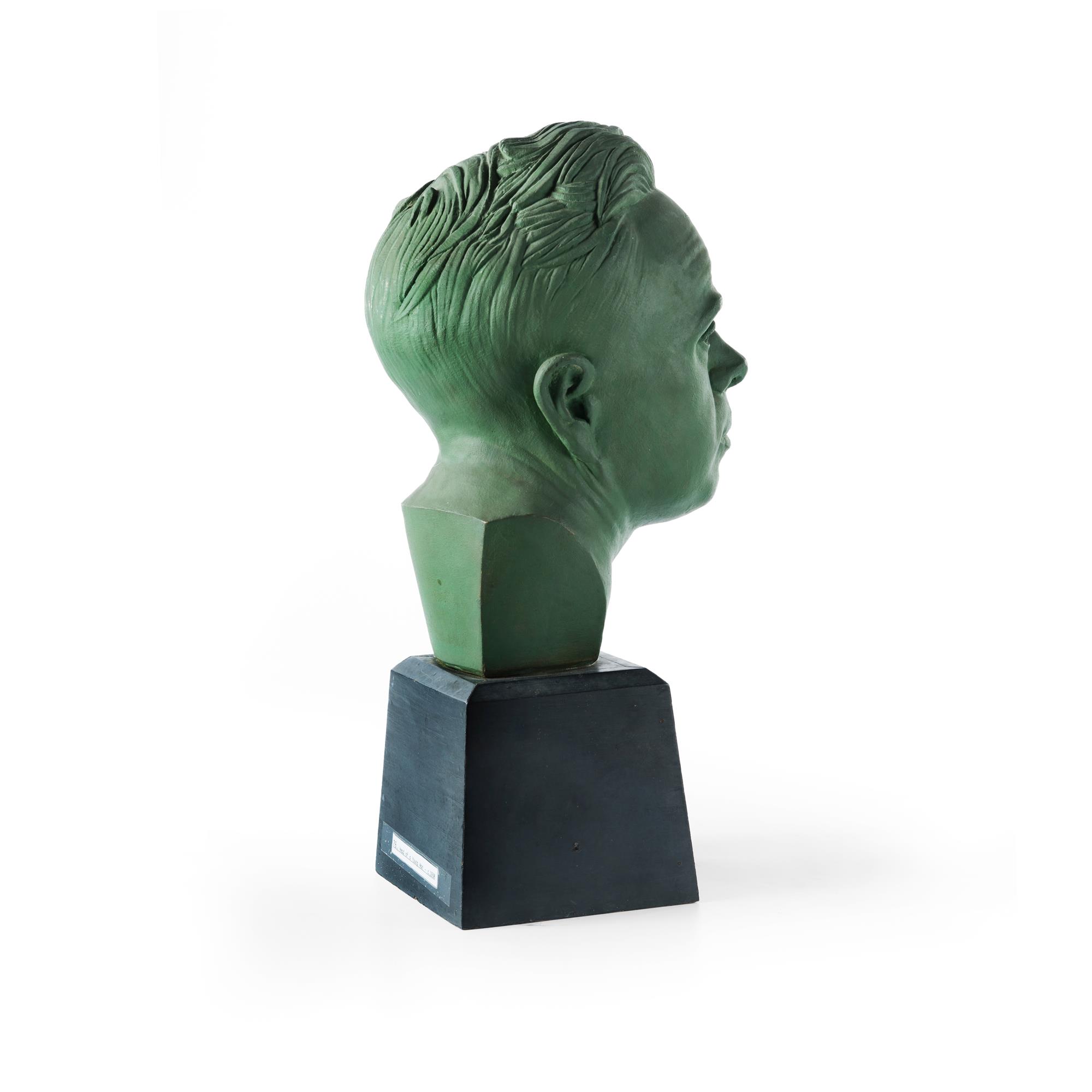 SMITH, Joshua (1905-1995) 'Head of a Young Man,' c.1930. Unsigned, but with estate label to base. Plaster, Paint on Wooden Base H46cm PROVENANCE: Estate Late Joshua Smith; Estate Late Yvonne O'Hara-Close (artist Yve Close) EXHIBITIONS: Joshua Smith - Artist - A Retrospective, Manly Art Gallery and Museum, 2nd December 2005 - 22nd January 2006 (#76)Estimate $500-800