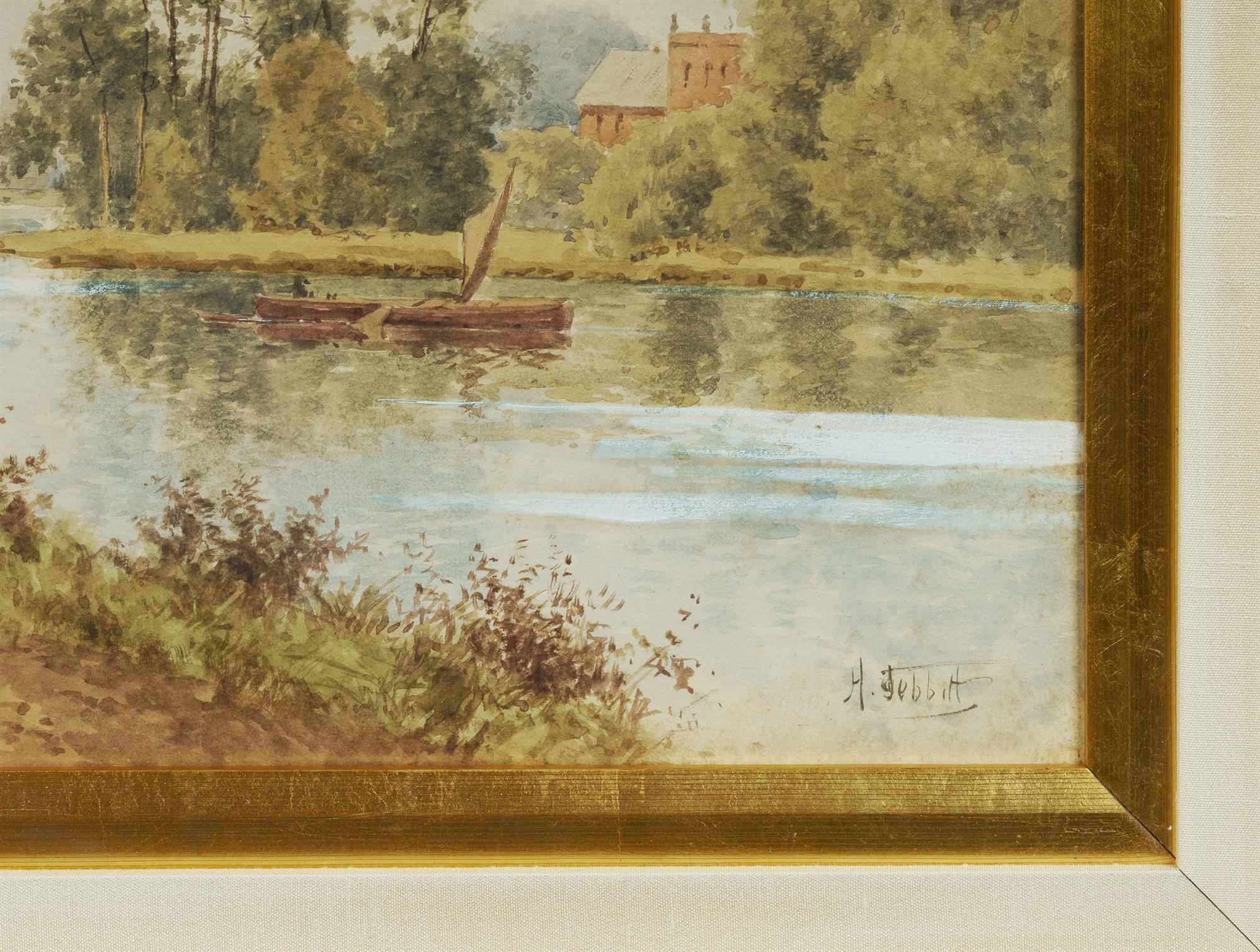 TEBBITT, Henri (1852-1926) Footpath Beside a River with View to Distant Church Signed lower right. W/Clr 44.5x78cmEstimate $300-500