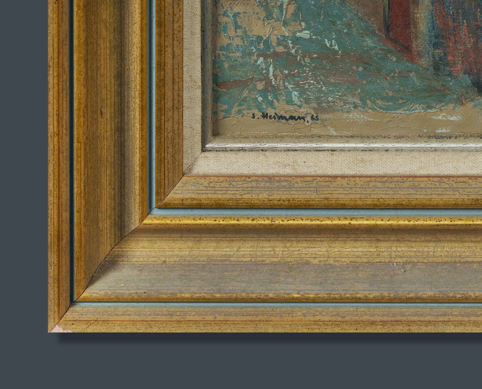 HERMAN, Sali (1898-1993) 'Meal Time, Paddington,' 1965. Signed lower left. Ex Artarmon Galleries, Sydney (label verso, stock #19028) Oil on Canvas 38x51cmEstimate $6,000-10,000
