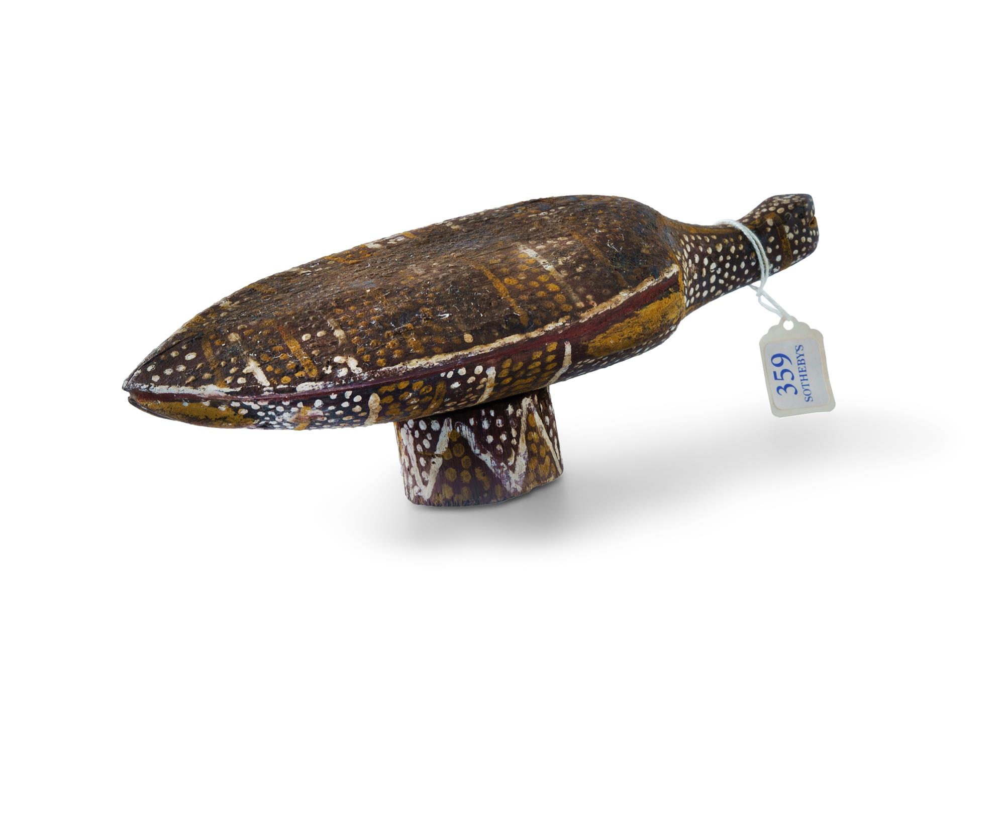 PURUNTATAMERI, Paddy Freddy (Aboriginal c.1919-1986) 'Long Neck Tortoise' Ex Sotheby's 9/7/2001 (lot 359) Natural Earth Pigments on Ironwood L28cm PROVENANCE: Collection Mr H & Mrs P Wallace, Sydney.Estimate $200-300