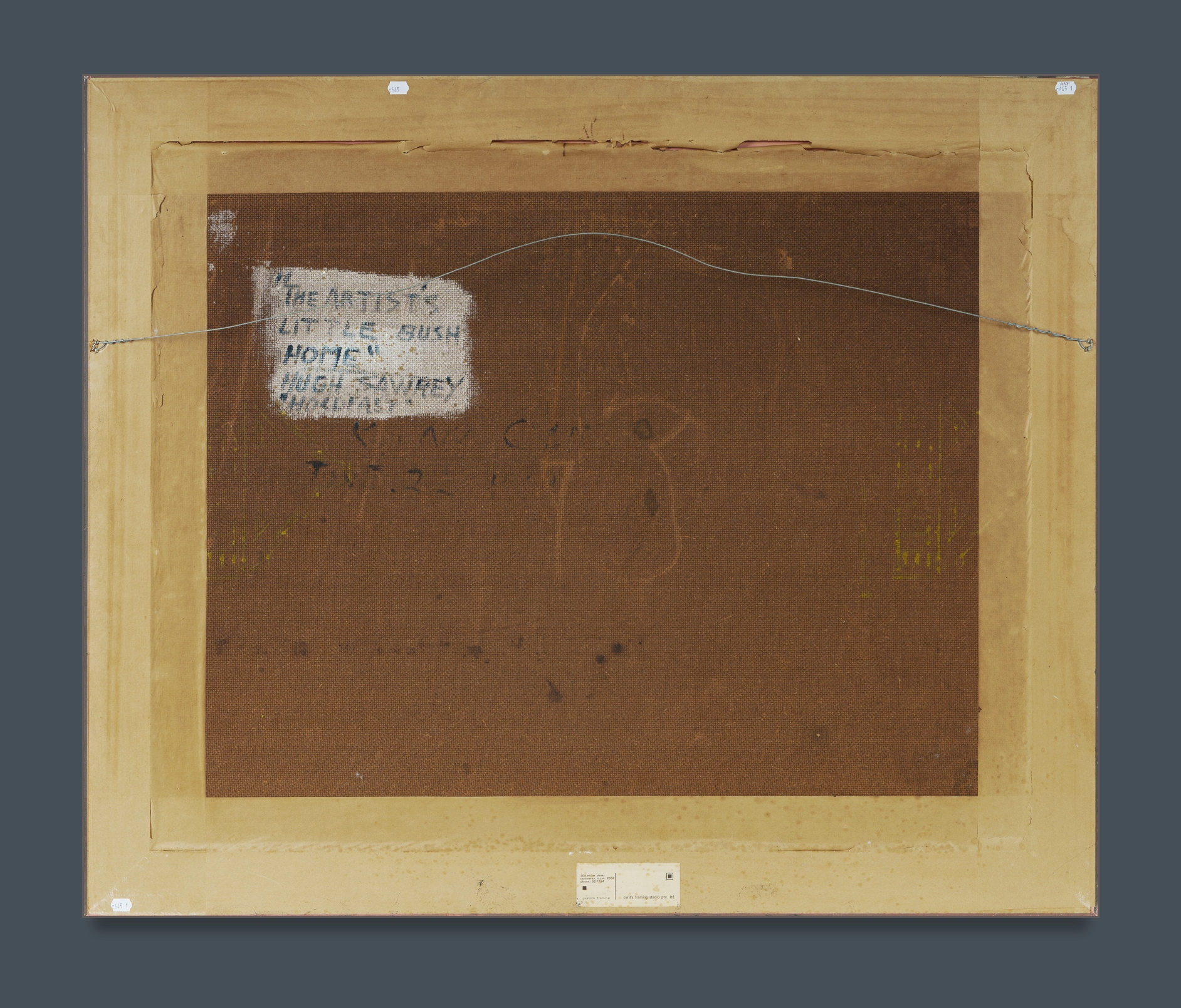 SAWREY, Hugh (1919-1999) 'The Artist's Little Bush Home,' 1961. Signed lower right. Additional signature and title verso. Oil on Board 59x73.5cmEstimate $1,500-2,500