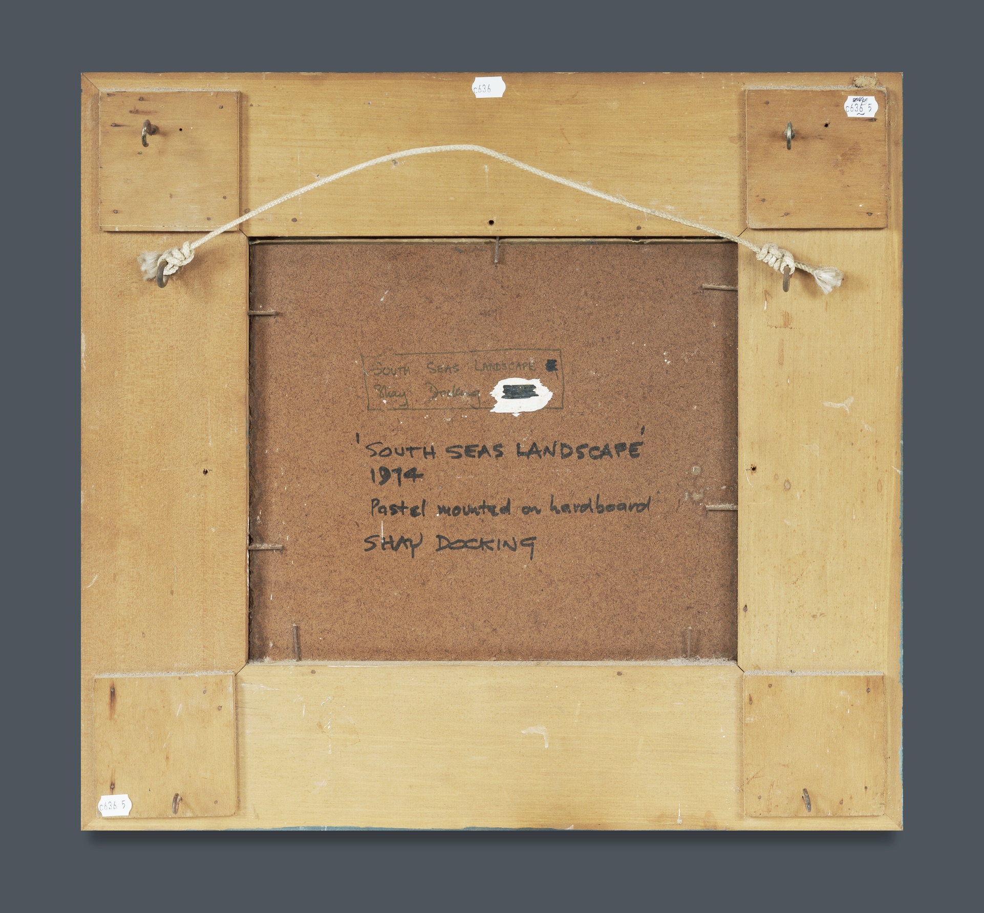 DOCKING, Shay (1928-1998) 'South Seas Landscape,' 1972/4. Signed lower right and inscribed verso. Pastel 22x25.5cmEstimate $200-400