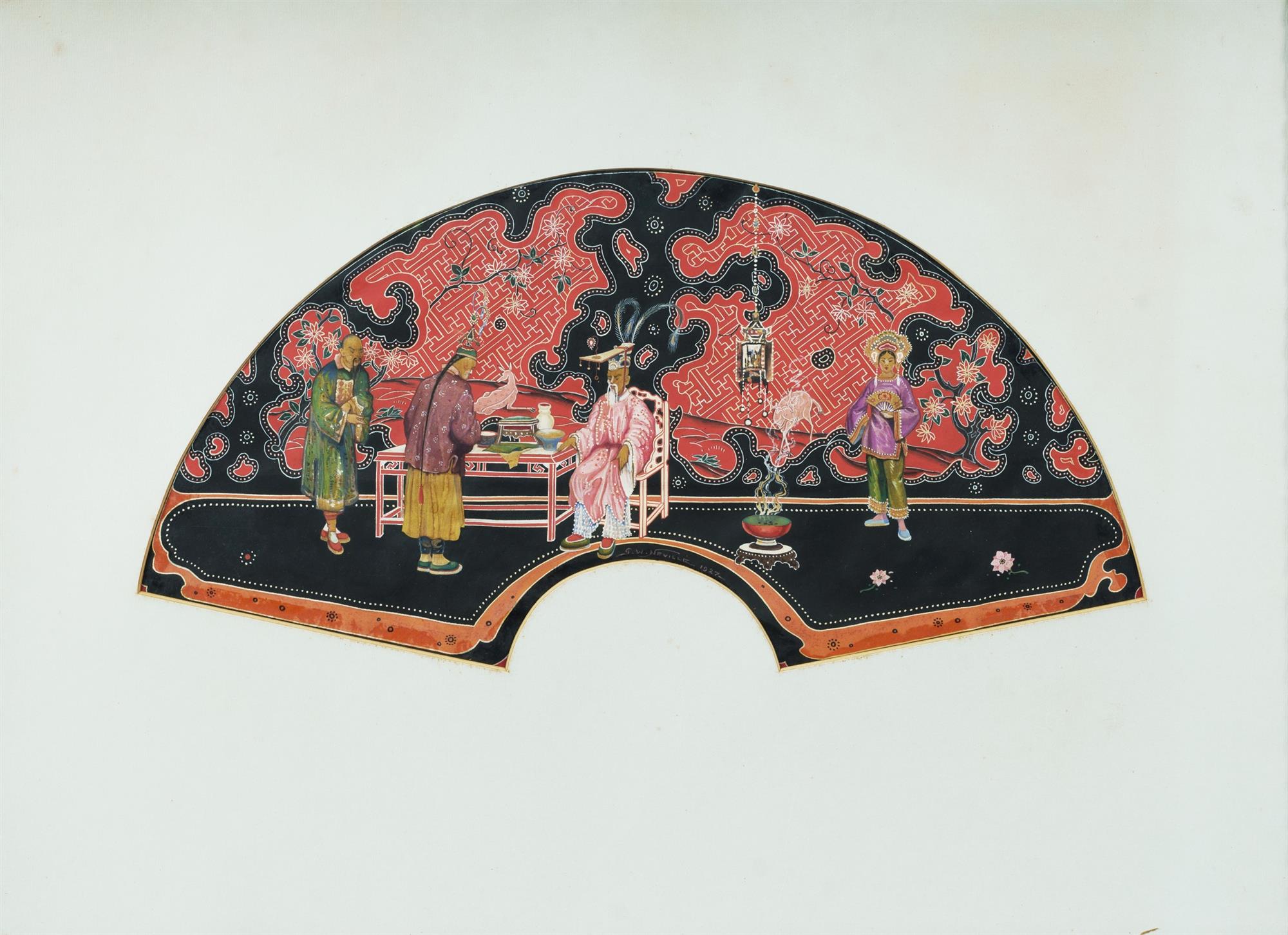 NEVILLE, George (1889-1954) Chinese Ceremony, 1927. Signed lower centre. W/Clr & Gouache on Silk 25x50cm (fan-shaped)Estimate $800-1,500