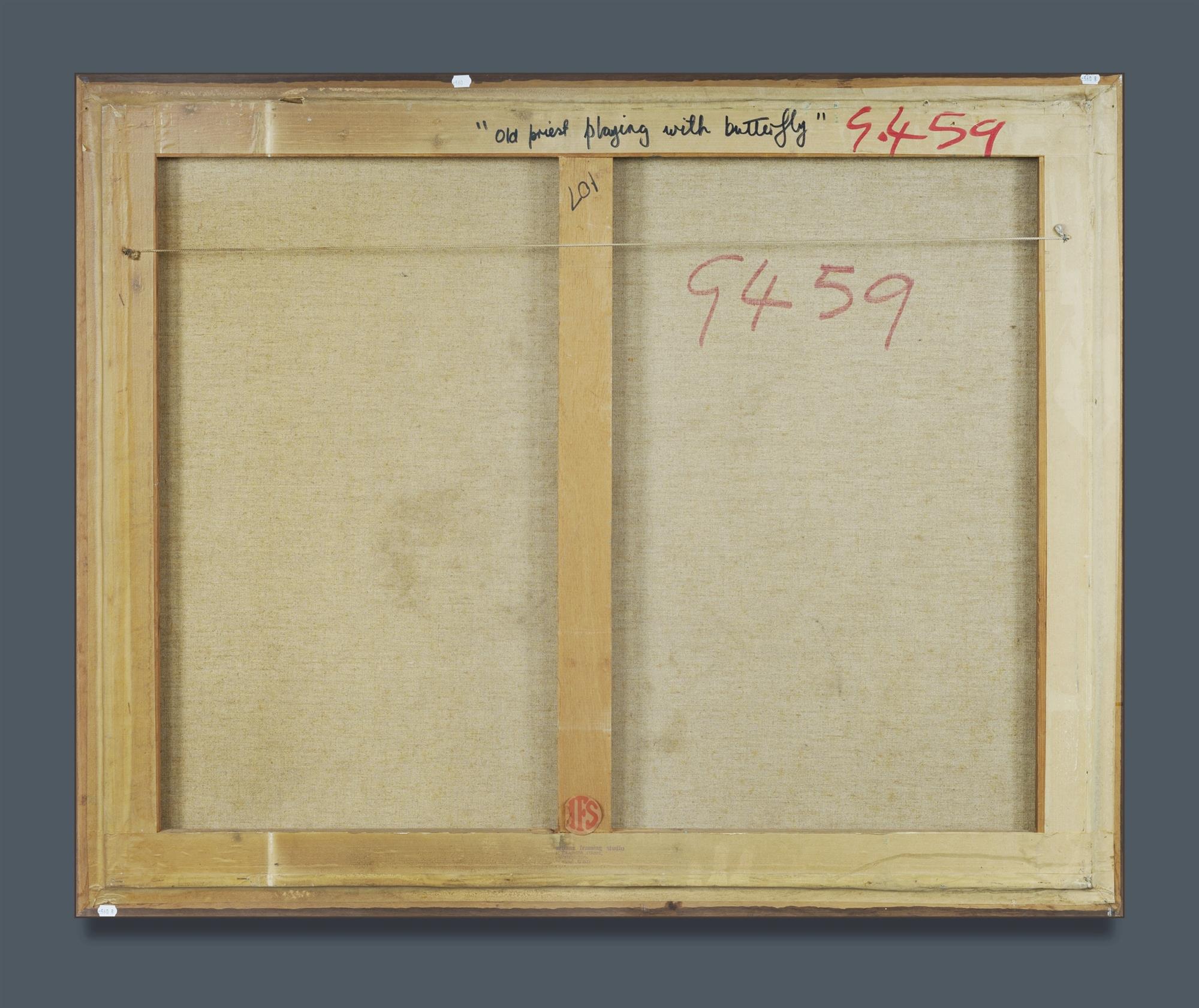 BOYD, David (1924-2011) 'Old Priest Playing with Butterfly,' 1974. Signed lower left. Oil on Canvas 73x92cmEstimate $8,000-12,000