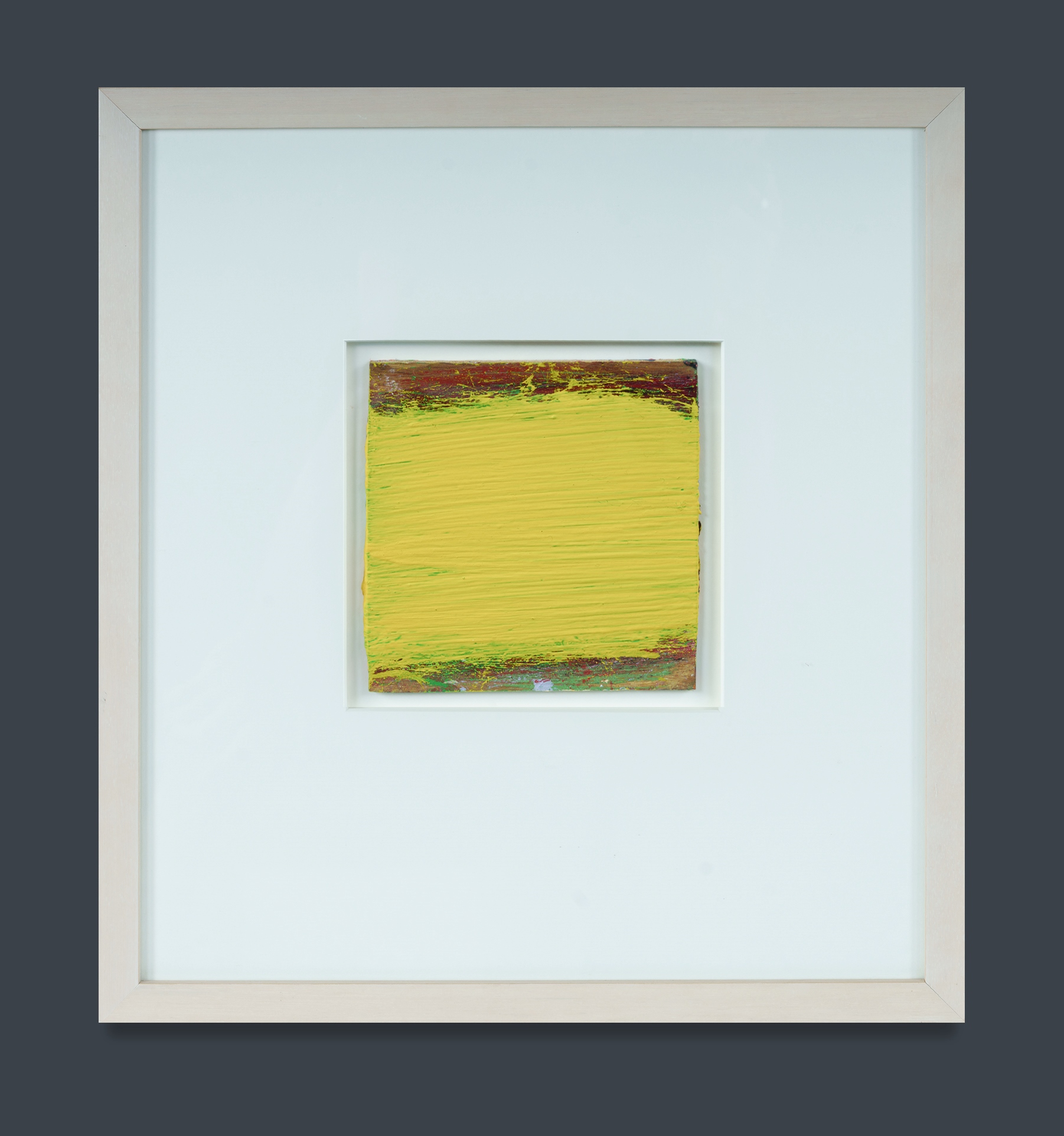 HIRSCHMANN, Robert (b.1968) 'Yellow Study #2,' 1999. Oil on Board 14.5x14.5cm PROVENANCE: King Street Gallery, Newtown, NSW (label & inscription verso); Collection Rev. Dr Arthur Bridge AM OAM.Estimate $300-600