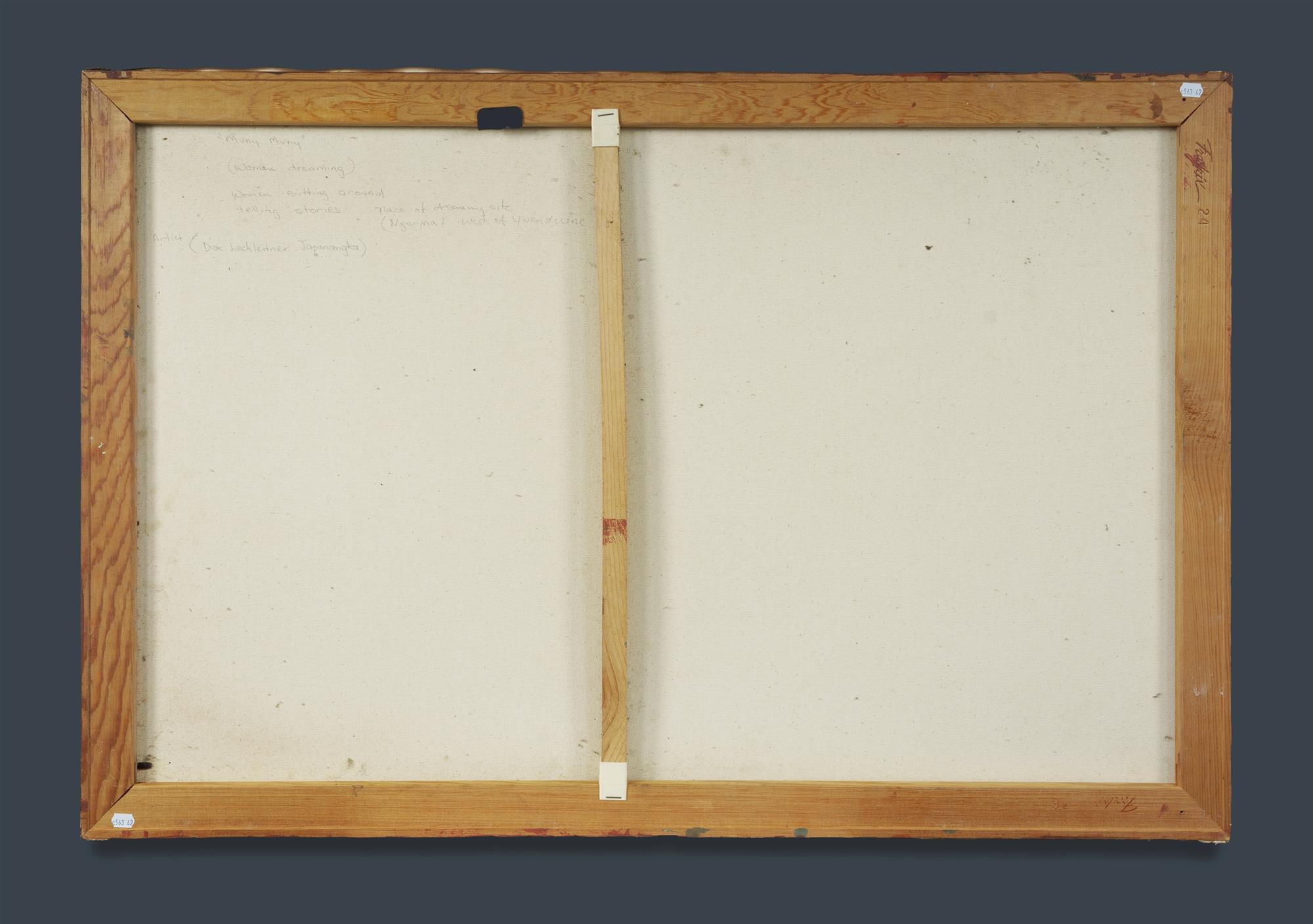 TJAPANANGKA, Dick Lechleitner (Aboriginal 1944-2001) 'Muny Muny, Women Dreaming,' c.1987. Inscribed verso. Acrylic on Canvas 91x61cm PROVENANCE: Town Bore, Haast's Bluff (purchased 1987); Collection Mr H & Mrs P Wallace, Sydney.Estimate $300-500