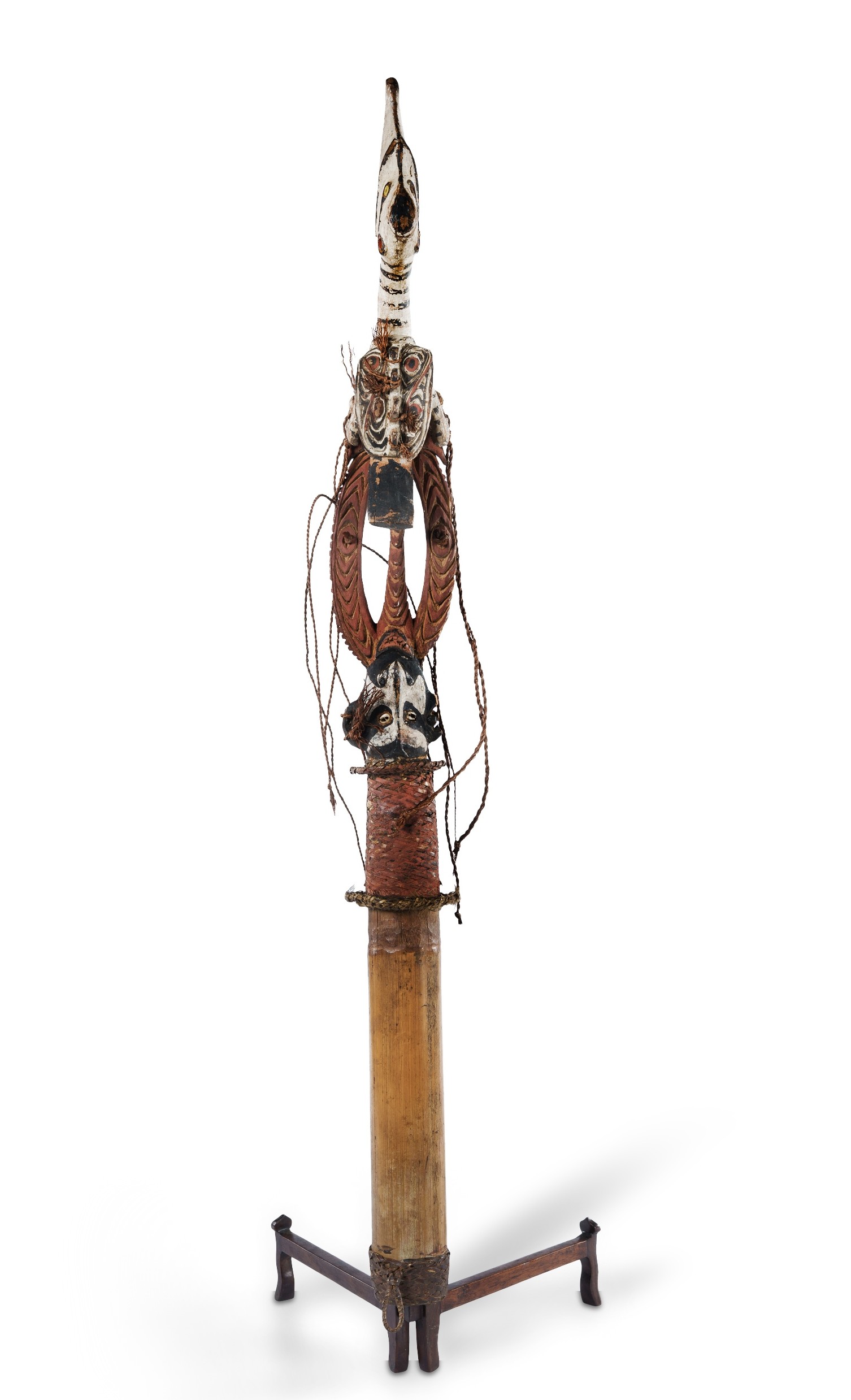 Ceremonial Lime Container - Finial Early 20th C Iatmul people, Middle Sepik. Carved wood, rattan and bamboo. (L73.5cm) PROVENANCE: Deceased Estate, Melbourne.Estimate $800-1,500