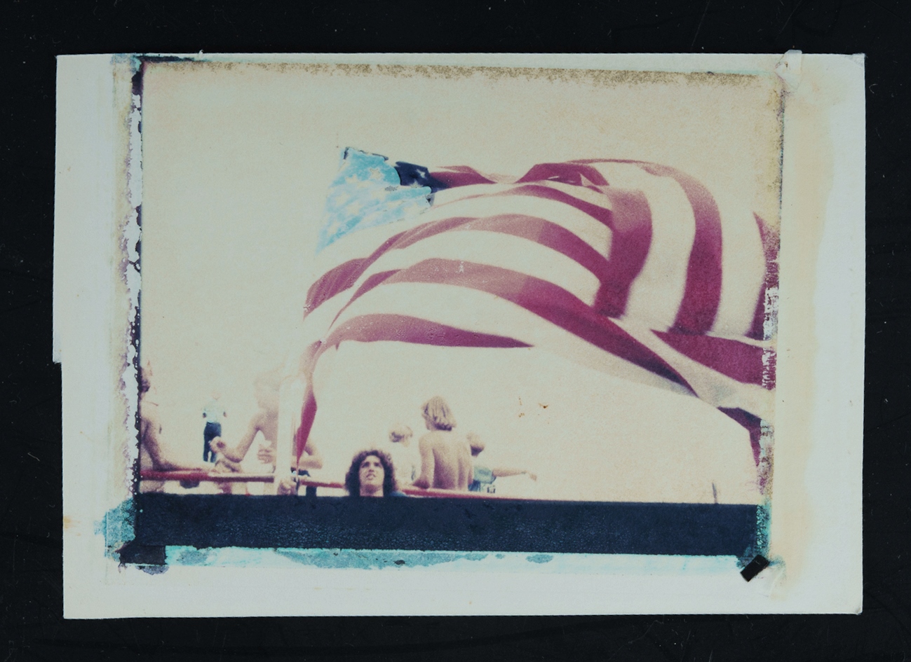 MORLEY, Lewis (1925-2013) 'Christo Homage' Image verso of US flag. Unsigned. Label verso (#LMP 12) Polaroid Transfer 8x12cm PROVENANCE: Lewis and Patricia Morley (label verso); private collection, NSW.Estimate $40-80