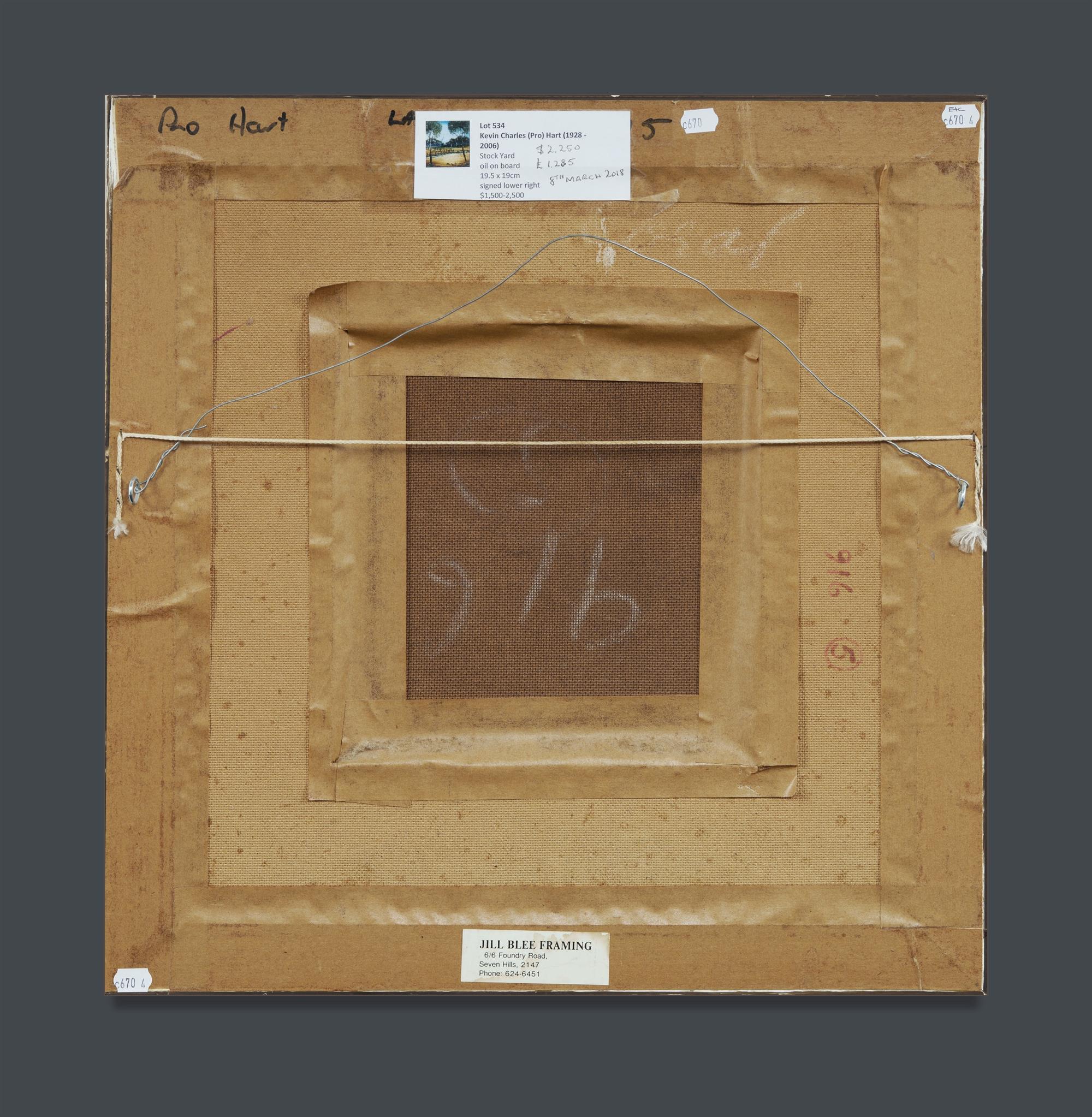 HART, Pro (1928-2006) 'Stock Yard' Signed lower right. Oil on Board 20x19.5cm PROVENANCE: Lawsons, Sydney, March 8th 2018 (lot 534)Estimate $1,000-1,500