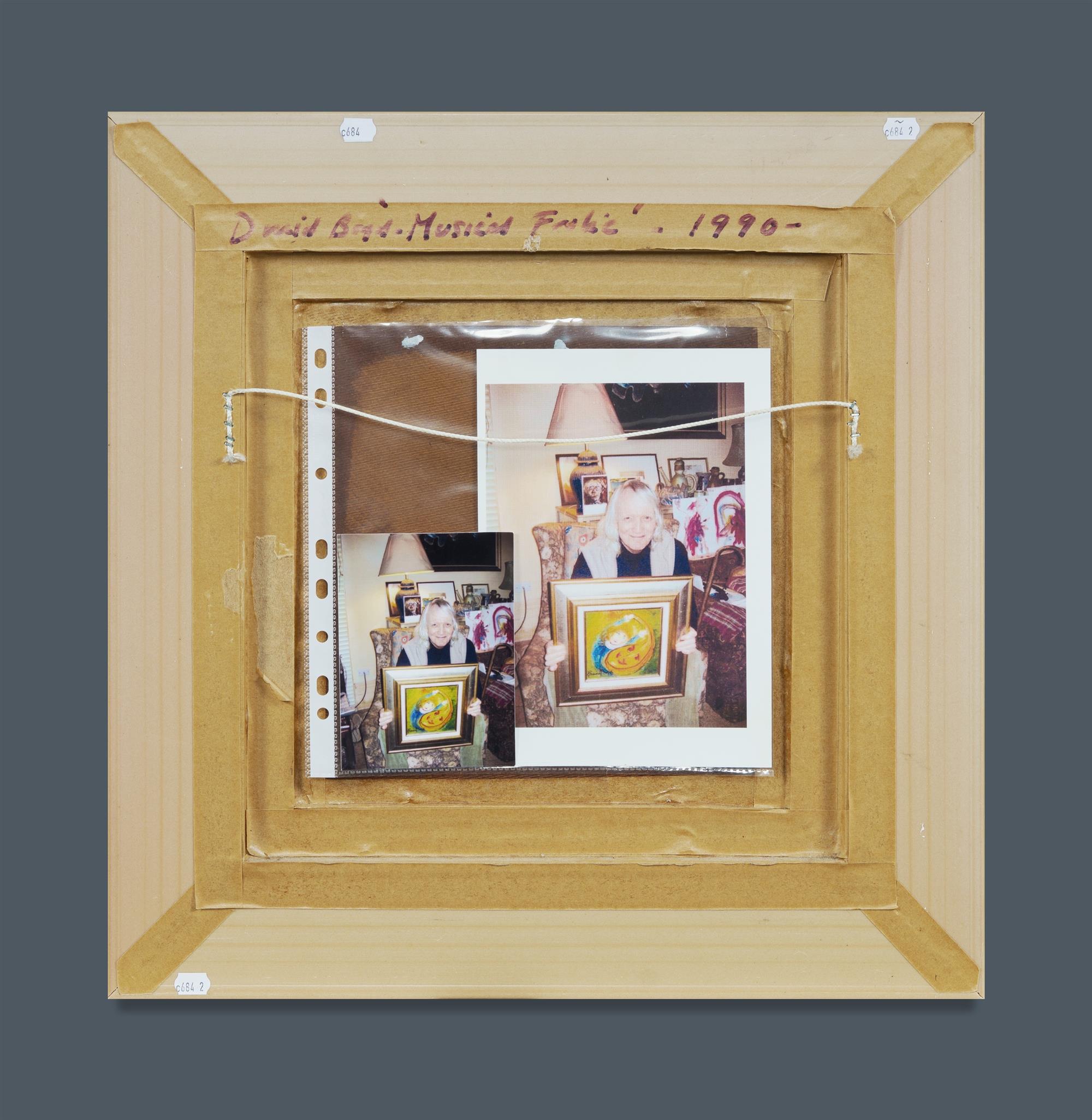 BOYD, David (1924-2011) 'Musical Frolic,' 1990. Signed lower left. Photo of the artist holding the painting attached verso. Oil on Board 24x23.5cmEstimate $2,500-3,500