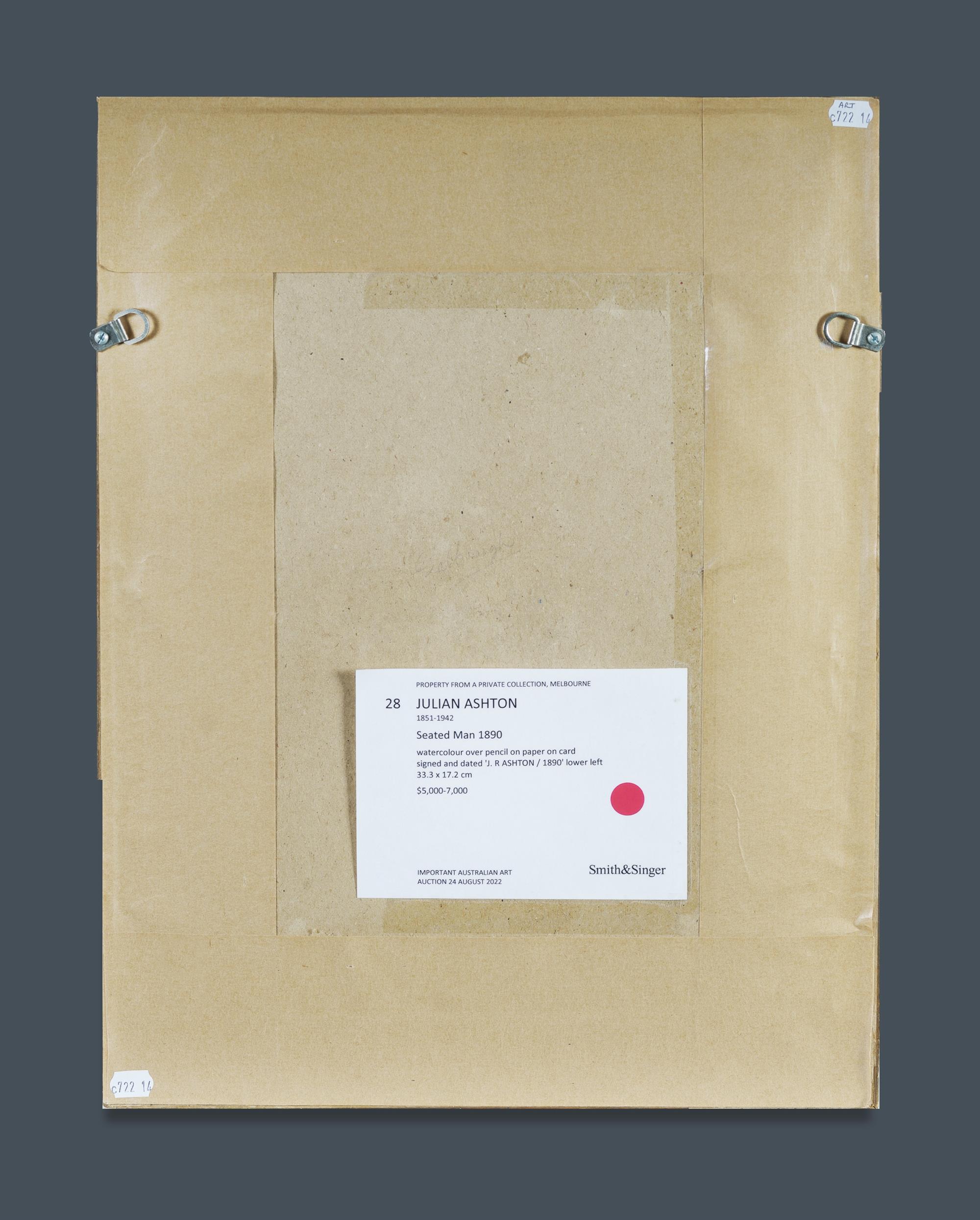 ASHTON, Julian Rossi (1851-1942) Seated Man, 1890. Signed and dated lower left. W/Clr 27x17cm PROVENANCE: Julian Ashton, Sydney; private collection; Christie's, Sydney, October 5th 1971 (lot 15); private collection, Sydney; private collection, Sydney, by descent from the above; Smith & Singer, Sydney, August 24th 2022 (lot 28); private collection, Sydney.Estimate $2,000-4,000