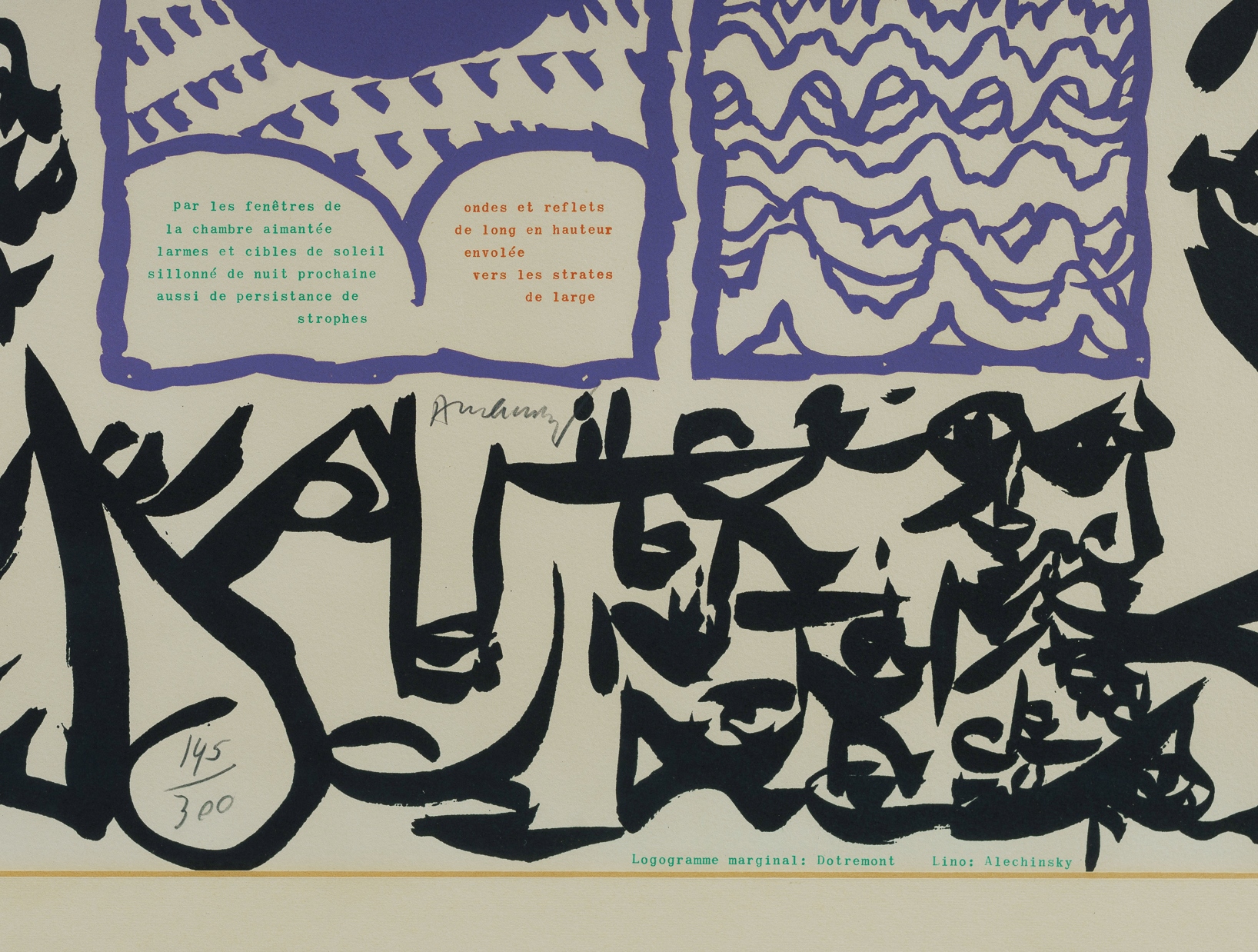 Pierre ALECHINSKY (Belgium b.1927) & Christian DOTREMONT (Belgium 1922-1979) 'Linolog I' Signed (Alechinsky) lower centre. Lino & Logogramme Multiple 145/300 47x62.5cmEstimate $600-900