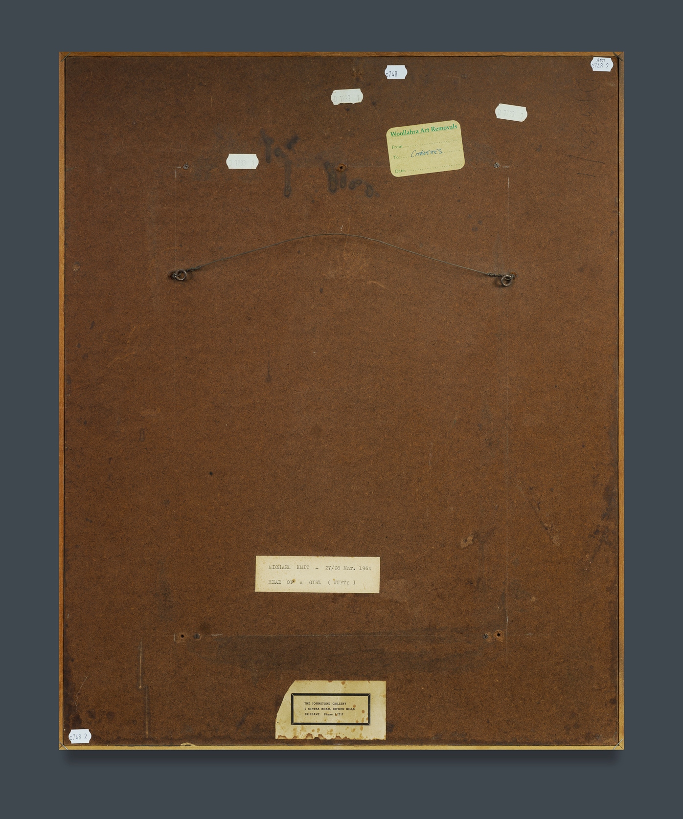 KMIT, Michael (1910-1981) 'Head of a Girl (Wufty)' 1964. Signed and dated lower right. Ex The Johnstone Gallery, Brisbane (label verso) Oil on Board 36x26cmEstimate $800-1,500