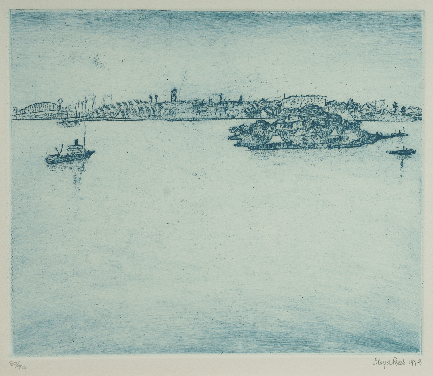 REES, Lloyd (1895-1988) (2) 'Iron Cove, Sydney Harbour' and 'The Summit, Ball's Head,' 1978. (From 'Tribute to Sydney' series) Both signed lower right. Soft Ground Etching (2) 80/90 25x30cm (plate)Estimate $600-900