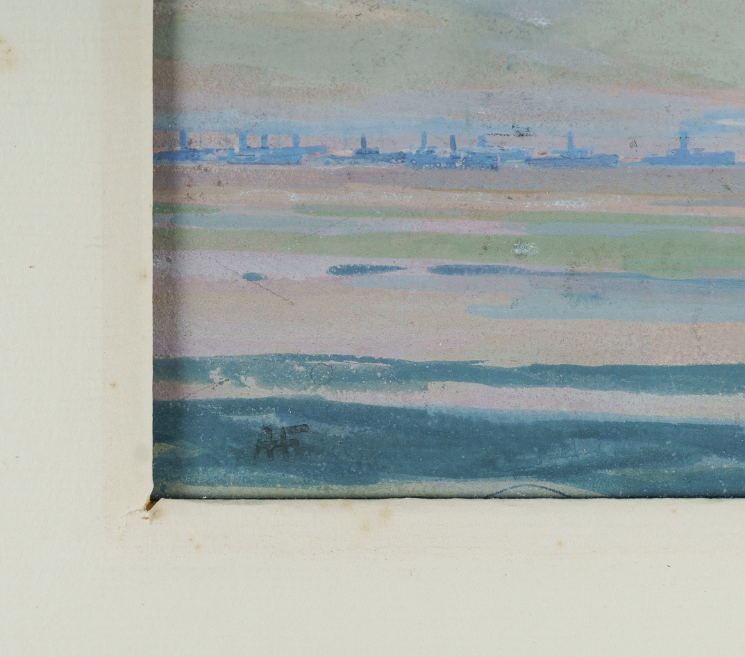 FULLWOOD, Albert Henry (1863-1930) 'The Day's Beginning' Initialled lower left. Gouache 14.5x32cm PROVENANCE: Leonard Joel, Melbourne, April 9th 1997 (lot 182)Estimate $600-900