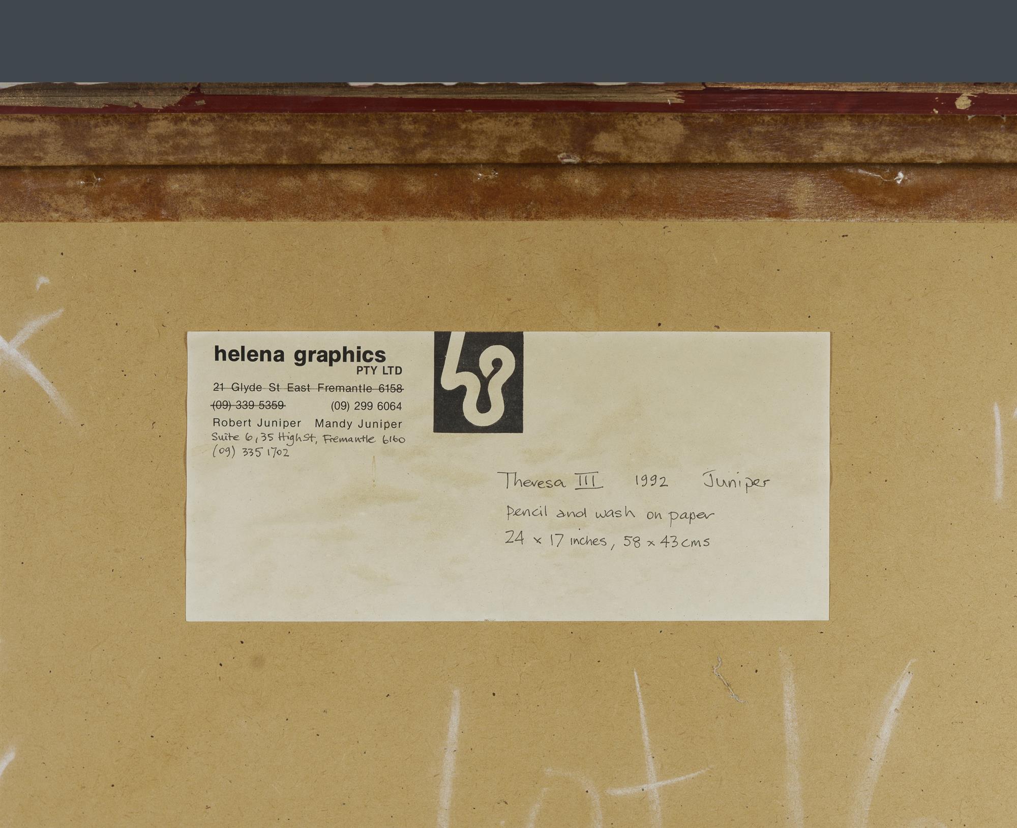 JUNIPER, Robert (1929-2012) 'Therese III,' 1992. Helena Graphics, Perth, label verso. Signed and dated lower right. Pencil & Wash 59x41cmEstimate $500-800