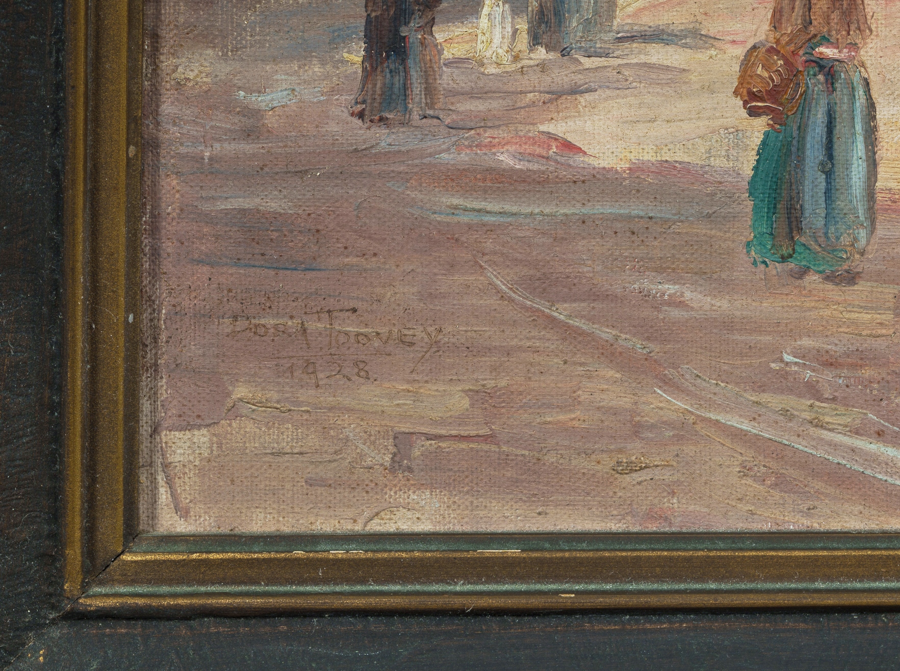TOOVEY, Dora (1898-1986) 'Spanish Market, Ibiza,' 1928. Signed and dated lower left. Old picture framer (S.A. Parker) labels verso. Oil on Canvas on Board 34x39cmEstimate $300-500