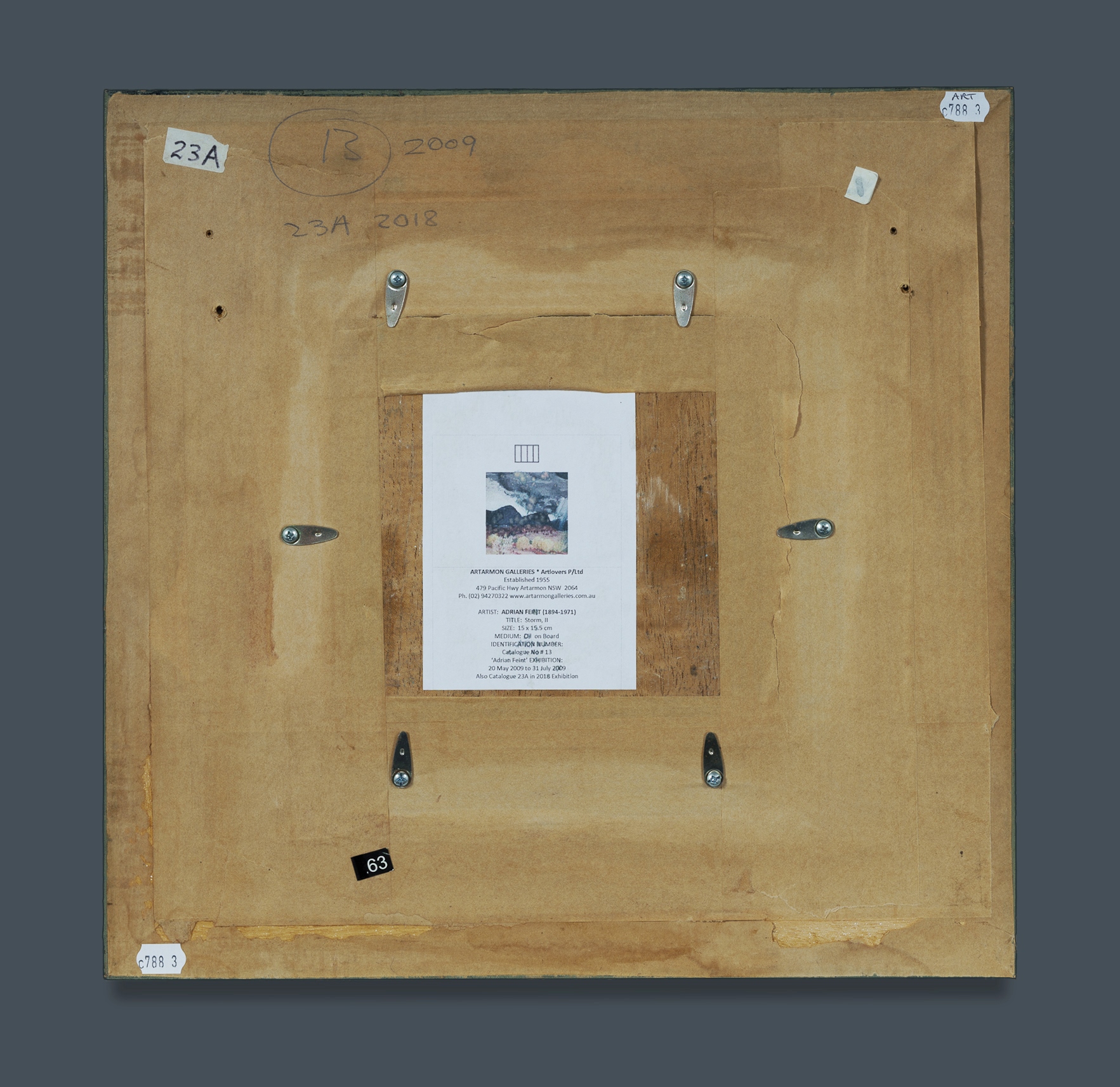 FEINT, Adrian (1894-1971) 'Storm II' Unsigned Oil on Ply 15x15.5cm EXHIBITIONS: Exhibited 'Adrian Feint,' May - July 2009 (cat #13); also exhibited 2018 (cat #23A), label verso.Estimate $800-1,200