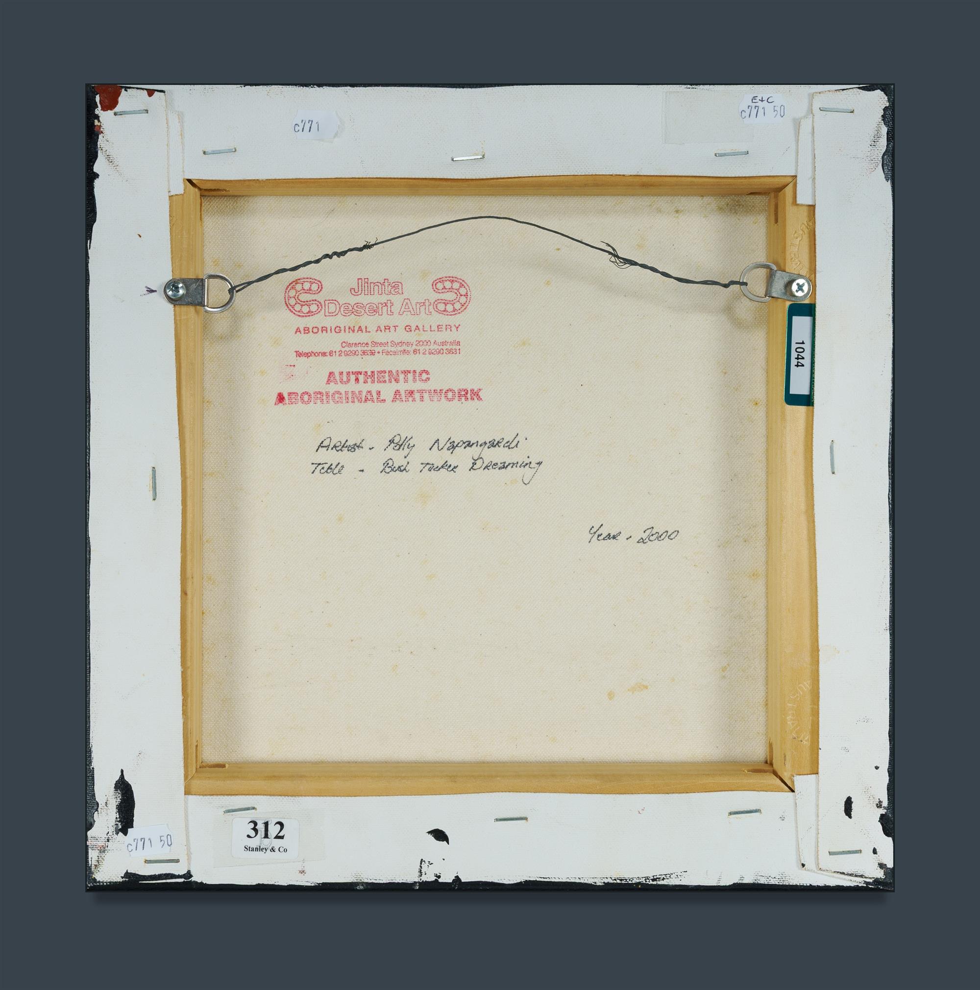 NAPANGARDI, Polly (Aboriginal School) 'Bush Tucker Dreaming,' 2000. Acrylic on Canvas 30.5x30.5cm PROVENANCE: Jinta Desert Art; Stanley & Co. Auctioneers (date of sale unidentified) lot 312 affixed; Ken Hinds Cultural Heritage Collection, Qld.Estimate $100-200