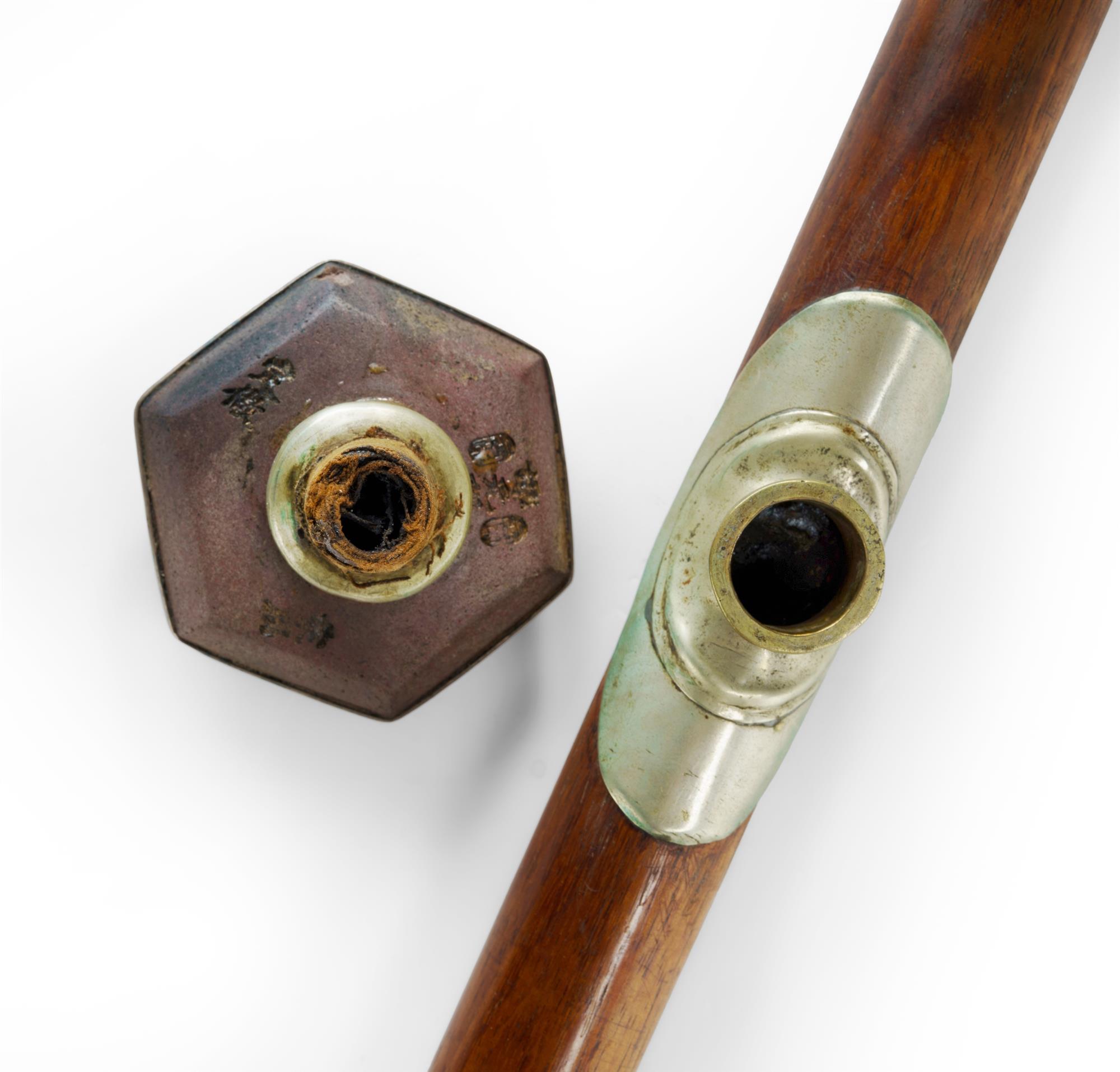 Chinese Qing Period Opium Pipe and Opium Lamp Hardwood pipe with ceramic bowl. (L54cm) PROVENANCE: Collection Late Kenneth F. Russell (1911-1987), Professor of Anatomy and Medical History, University of Melbourne.Estimate $400-800