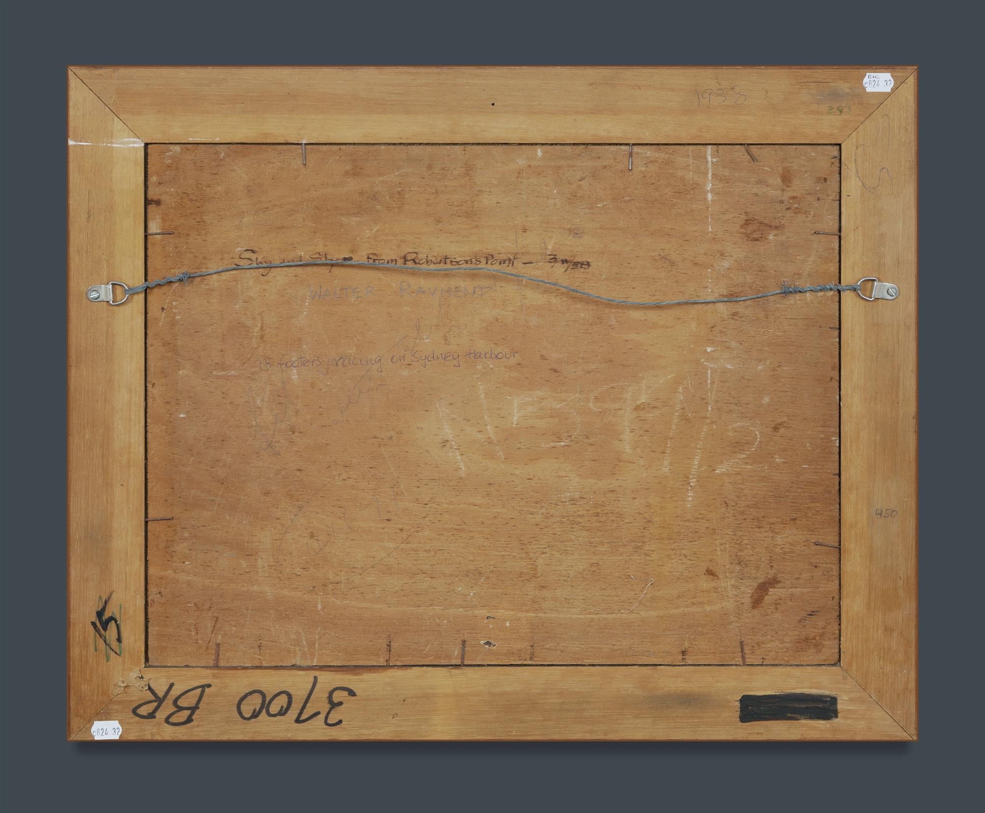 RAYMENT, Walter (working 1930s-40s) 'Sky and Shore from Robertsons Point [Sydney Harbour]' Signed lower right Oil on Canvas on Board 29x39cm PROVENANCE: The Fred and Elinor Wrobel Collection, Sydney.Estimate $100-200
