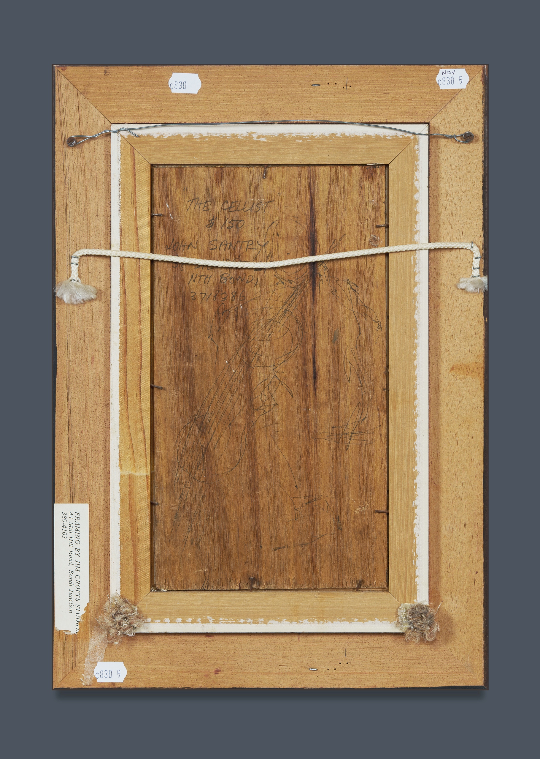 SANTRY, John (1910-1990) 'The Cellist' Signed lower right. Additional working sketch and inscribed verso. Oil on Ply 22x11.5cm PROVENANCE: The Estate of the Late Douglas Black, Queensland.Estimate $150-250