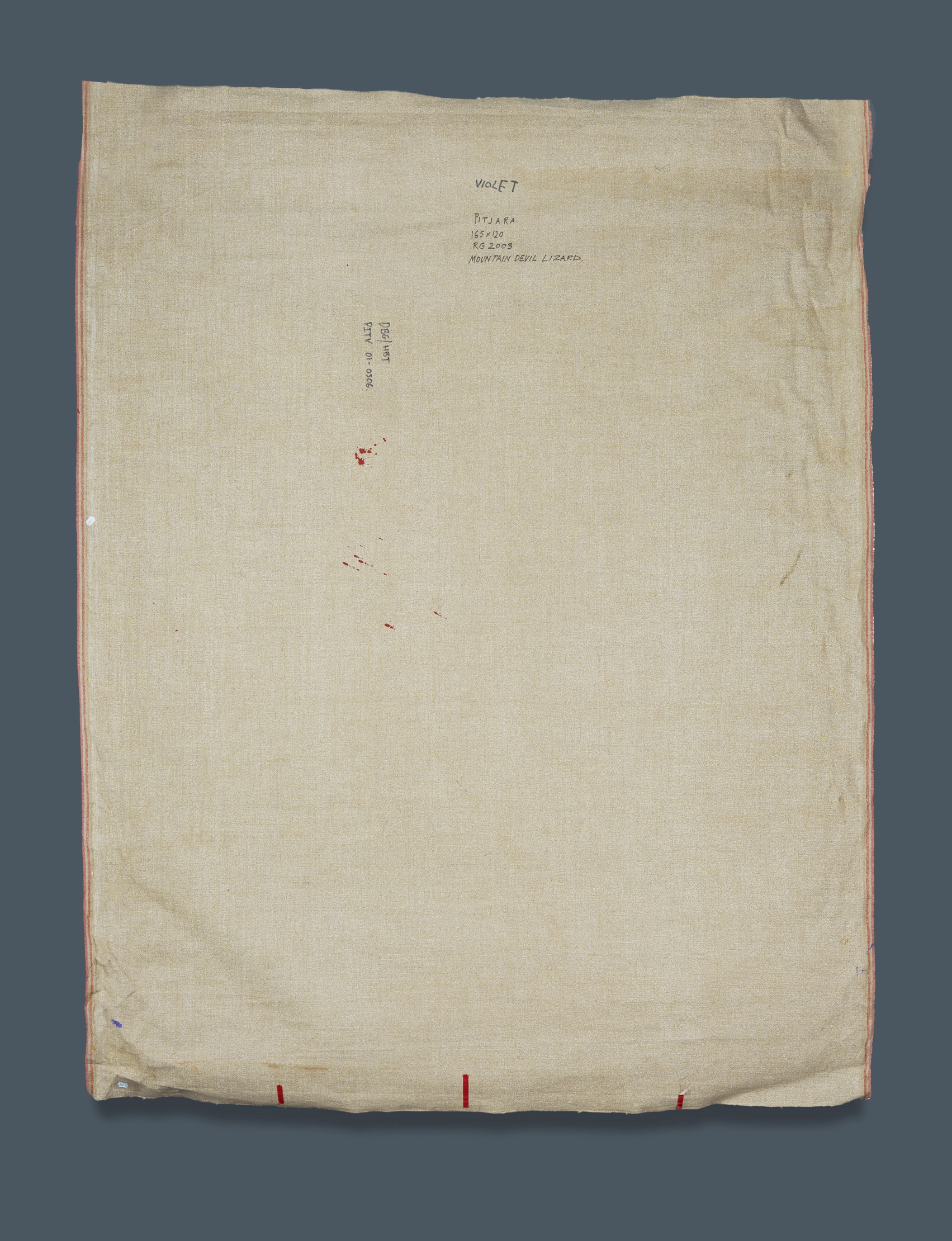 PETYARRE, Violet Pitjara (Aboriginal born c.1945) 'Mountain Devil Lizard,' 2003. Signed and inscribed verso: DBG/HBT PITV 01-0506. Acrylic on Linen 162x122cm (image) PROVENANCE: Russell Guy, Didgeridoo / Artifacts, NT (certificate of authenticity supplied)Estimate $400-700