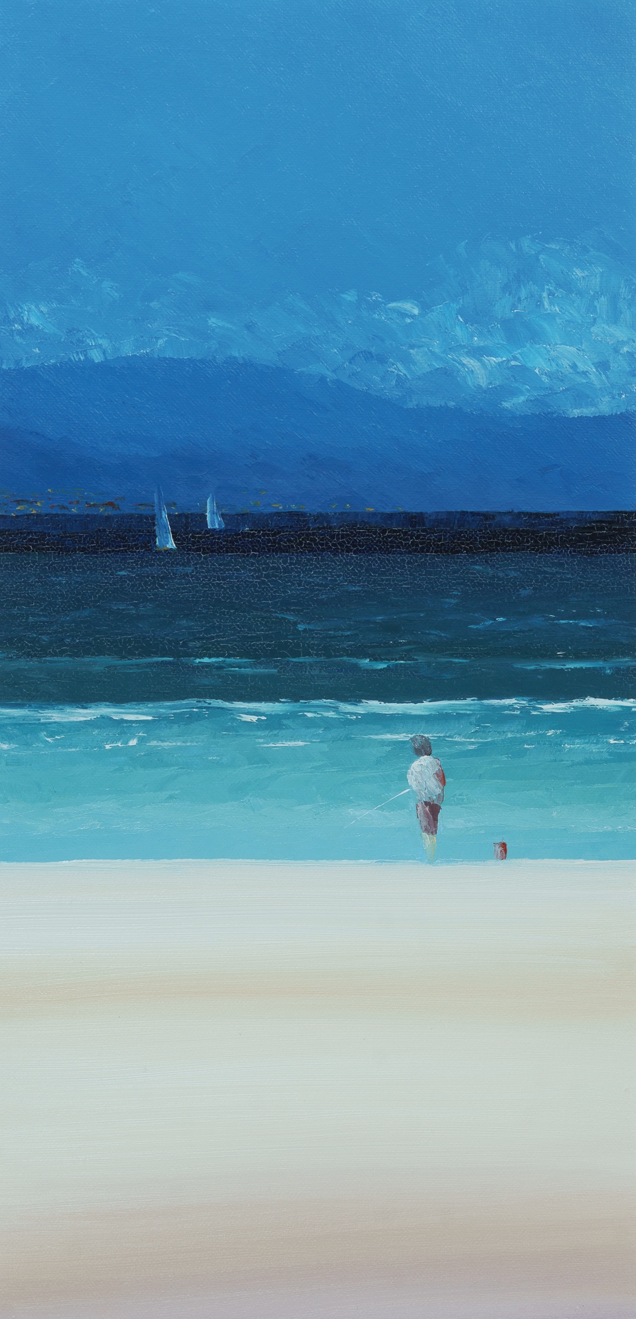 IRELAND, Howard B (b.1939) (2) 'Morning at Batemans [Bay]' and 'South Coast Fisherman' No signature apparent; old title labels verso. Oil on Canvas (2) 39.5x19cm (each)Estimate $120-200