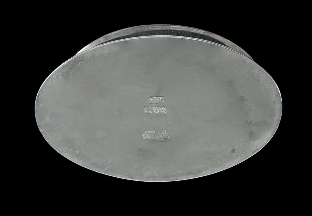 Geo V HMSS Oval Box. Chester, 1914, by Hardy Bros. With hinged lid. L10cm W155g Estimate $80-160